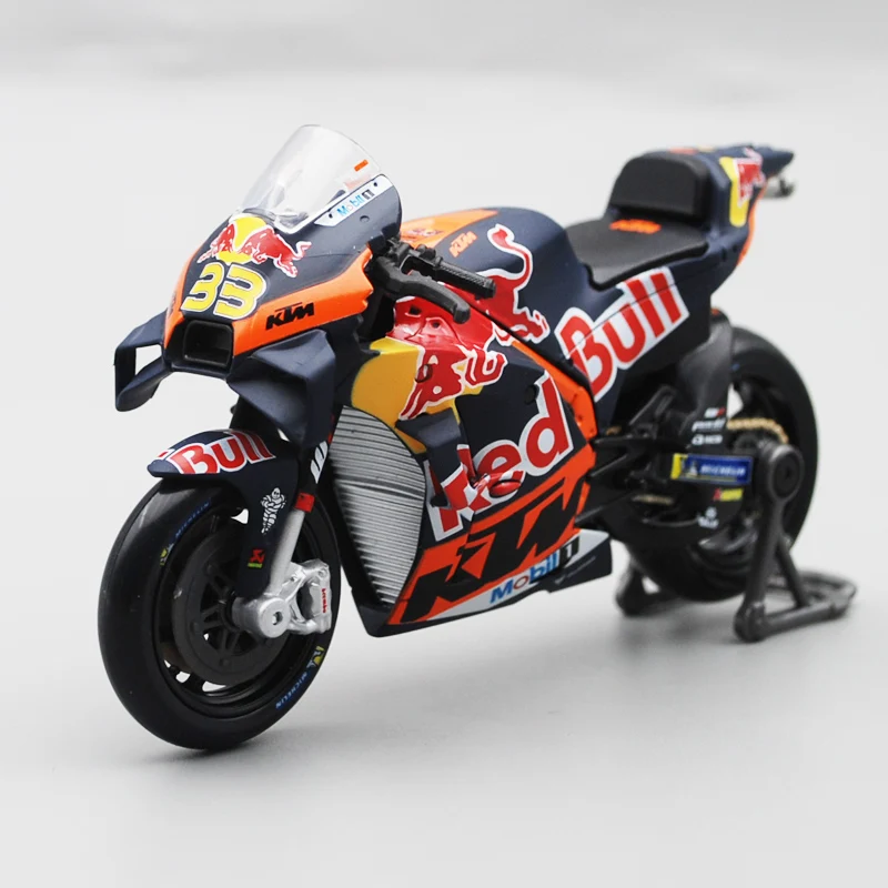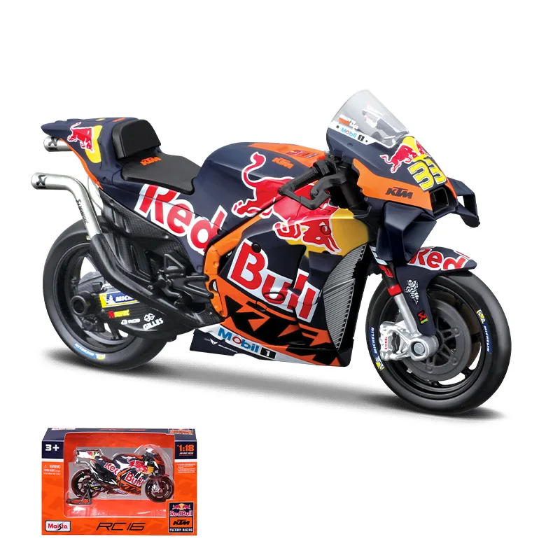 Capture the excitement of Moto GP with this highly detailed 1:18 scale Maisto Red Bull KTM GP Racing alloy motorcycle model, perfect for collectors and racing enthusiasts. Meticulously crafted from diecast metal, this miniature replica showcases authentic design elements of the Red Bull Racing KTM RC16 bike, making it an impressive display piece or thoughtful gift. Its realistic appearance brings the thrill of racing into your space, allowing you to appreciate the craftsmanship and precision of this collectible. Whether you’re a dedicated fan or adding to your collection, this model offers a unique way to celebrate the world of high-speed racing and aerodynamic engineering.