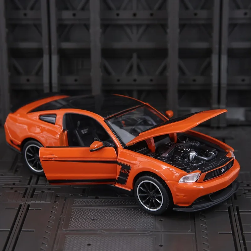 Experience the thrill of collectible realism with this 1:24 scale Maisto diecast metal Ford Mustang Boss 302 miniature model, crafted from alloy and plastic. Its bold orange body with black accents—including a matte black hood, side stripes, and rear spoiler—captures the sleek, aggressive essence of the classic muscle car. Detailed with door seams, side vents, clear headlights, and multi-spoke black and silver rims with black rubber tires, this model offers exceptional craftsmanship. Non-electric, suitable for ages 4 and older, it’s the perfect addition for enthusiasts and collectors seeking a high-quality display piece that embodies dynamic design and impeccable detail.
