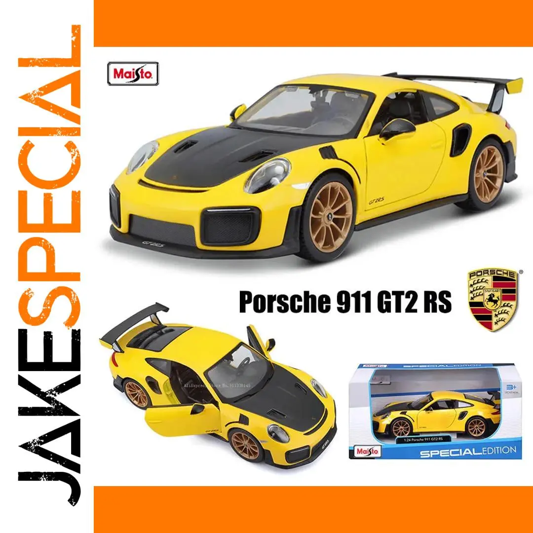 - This authentic Maisto 1:24 scale Porsche 911 GT2 RS model features detailed diecast metal with accurate proportions for a realistic display. Its vibrant red and blue colors bring the design to life.