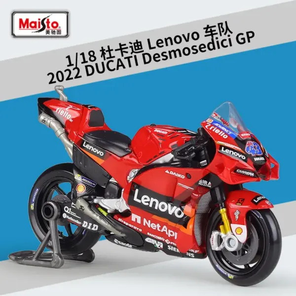 Imagine adding this highly detailed diecast model of the 2023 Ducati Team GP racer to your collection, bringing excitement and authenticity to your display. Crafted from high-quality metal, this 1:18 scale model captures every curve and decal of the original racing bike, perfect for enthusiasts and collectors who appreciate precision. Its realistic design offers a chance to own a piece representing the thrill of motorcycle racing. Whether you're a seasoned collector or just starting out, this model offers durability and visual appeal that will complement any collection. Showcase it proudly, and relive the adrenaline of the races with this exceptional collectible.