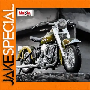 Immerse yourself in the vintage charm with this meticulously crafted Maisto Harley Davidson 74FL Hydra Glide diecast motorcycle model. Painted in a glossy olive-green finish on the fuel tank and rear fender, it captures the authentic style of the classic Harley Davidson. The shiny chrome accents on the headlight housing, handlebars, engine components, and exhaust pipes lend a realistic metallic gleam, enhancing its collectible appeal. With intricately detailed wheels featuring chrome spokes and treaded black tires, this model offers a lifelike appearance. Its streamlined black seat complements the vintage aesthetic, making it a striking display piece. Perfect for collectors and enthusiasts, this model truly embodies the iconic design of the Harley Davidson 74FL Hydra Glide.
