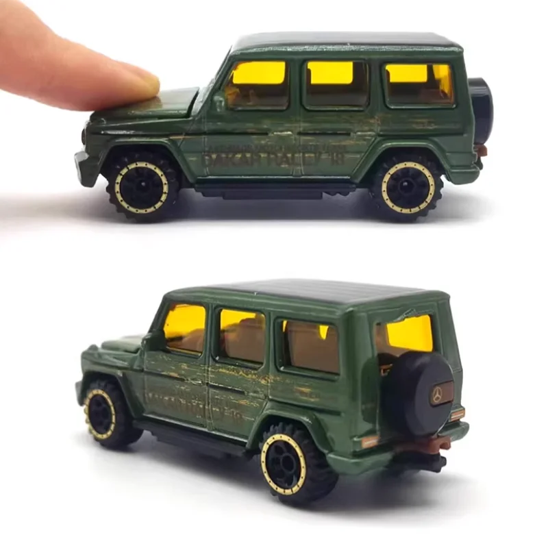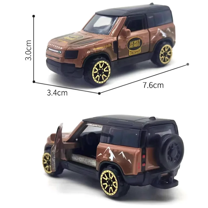 This detailed 1:64 scale diecast alloy vehicle model measures approximately 7.5 cm in length and is perfect for display, collection, or decoration. Featuring rich, realistic details including rugged off-road and sporty designs, the models showcase vibrant colors like lush green, sleek silver, crisp white with blue racing stripes, and earthy tan. Crafted with fixed joints for stability, each handmade collectible may have minor cosmetic imperfections such as scratches or stains that do not detract from its visual appeal. Suitable for ages 14 and above, these static models are ideal for enthusiasts seeking a high-quality, visually striking addition to their collection or display.