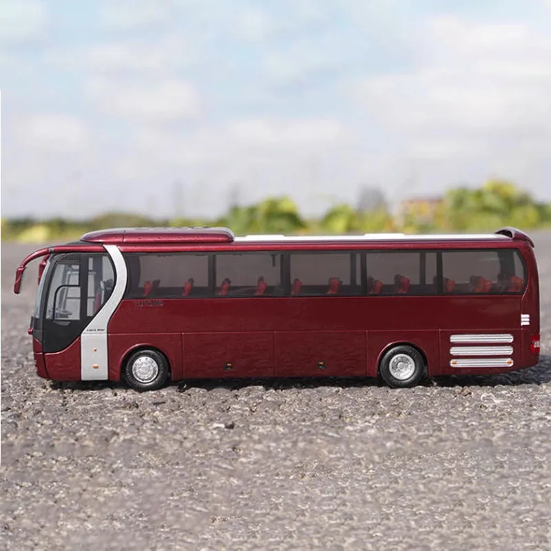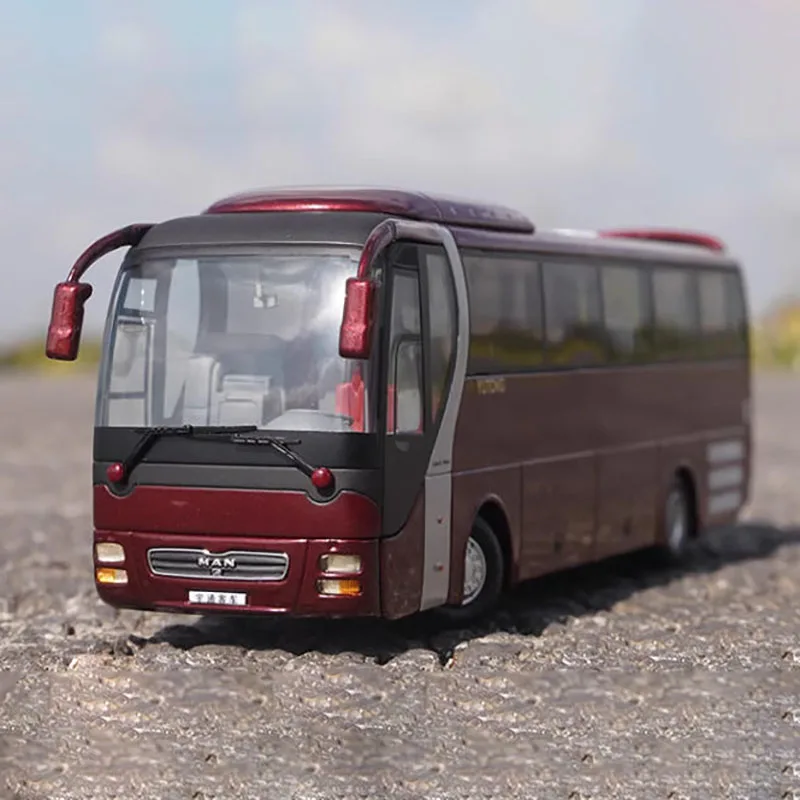 Step into the world of collectible diecast cars with this meticulously crafted 1:42 scale MAN R41 Bus model. This stunning replica captures the sleek, modern aesthetics of the original vehicle, featuring a deep, rich red finish that accentuates its smooth, streamlined body. The model’s large, clear windows reveal detailed red interior seating, while the expansive front windshield offers a panoramic view that adds to its realism. Subtle black and silver accents, including precise headlights and a black grille adorned with the MAN logo, lend an air of sophistication. Rounded contours and textured side lines reflect the bus's contemporary design, making this piece a perfect display item for enthusiasts and collectors alike. Its finely sculpted alloy and plastic construction ensures durability and style, elevating your collection with a touch of class.