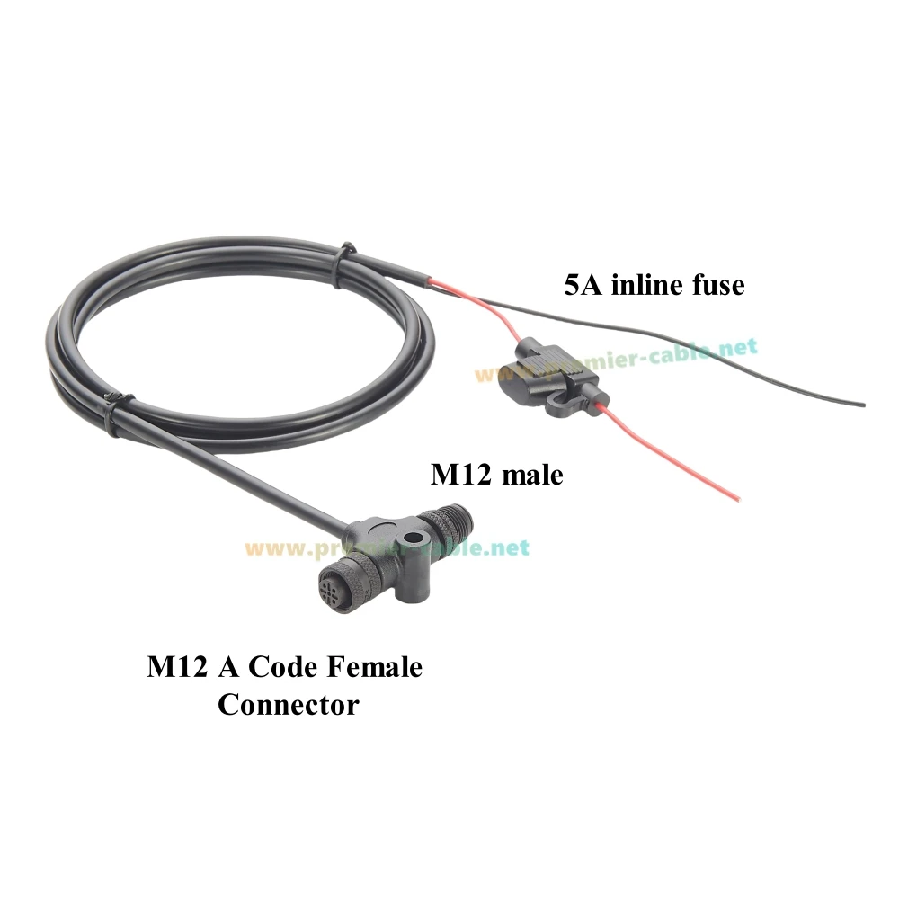 This marine-grade NMEA 2000 (N2K) T-connector cable measures 1.5 meters with a 5.2mm outer diameter, crafted from UV and corrosion-resistant PVC suitable for harsh marine environments. It features M12 A code male and female connectors with gold-plated contacts and 18 AWG wiring for reliable power transmission. Rated IP67 for waterproof durability, it includes a built-in 5A inline fuse to protect against overcurrent. Compatible with Garmin, Lowrance, Simrad, B&G, and Navico marine networks, it operates from -40°C to 85°C, providing a durable, high-performance solution for seamless marine network integration.