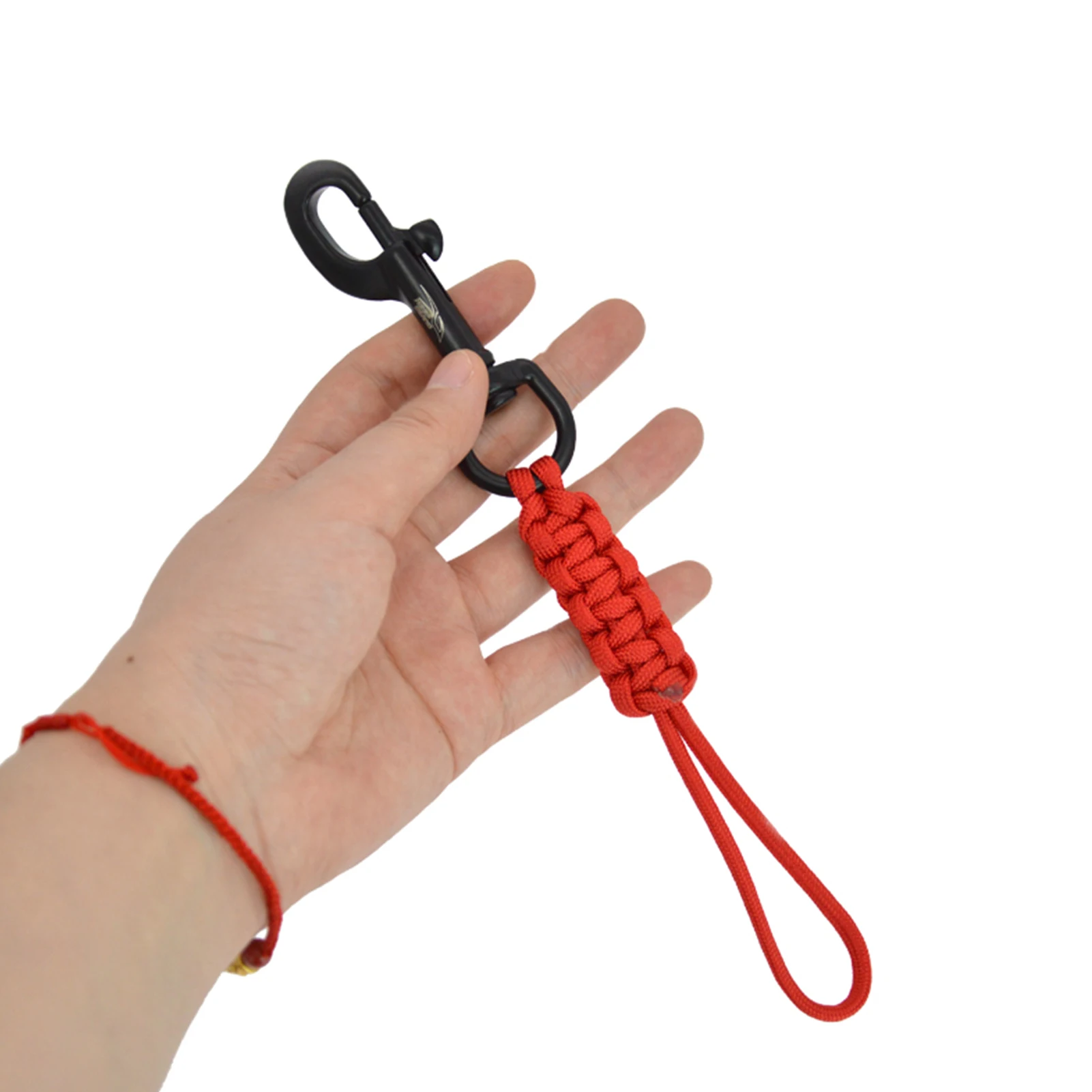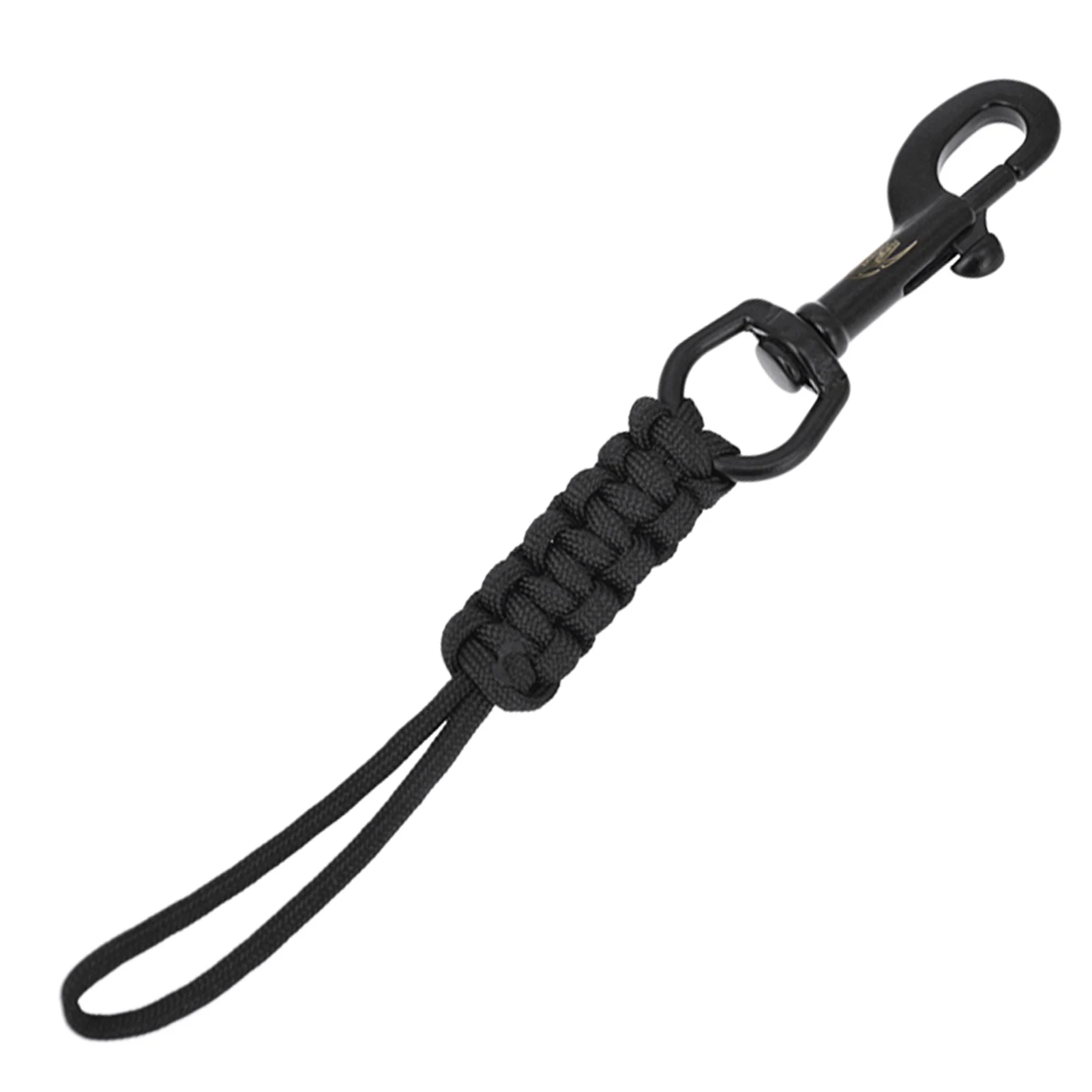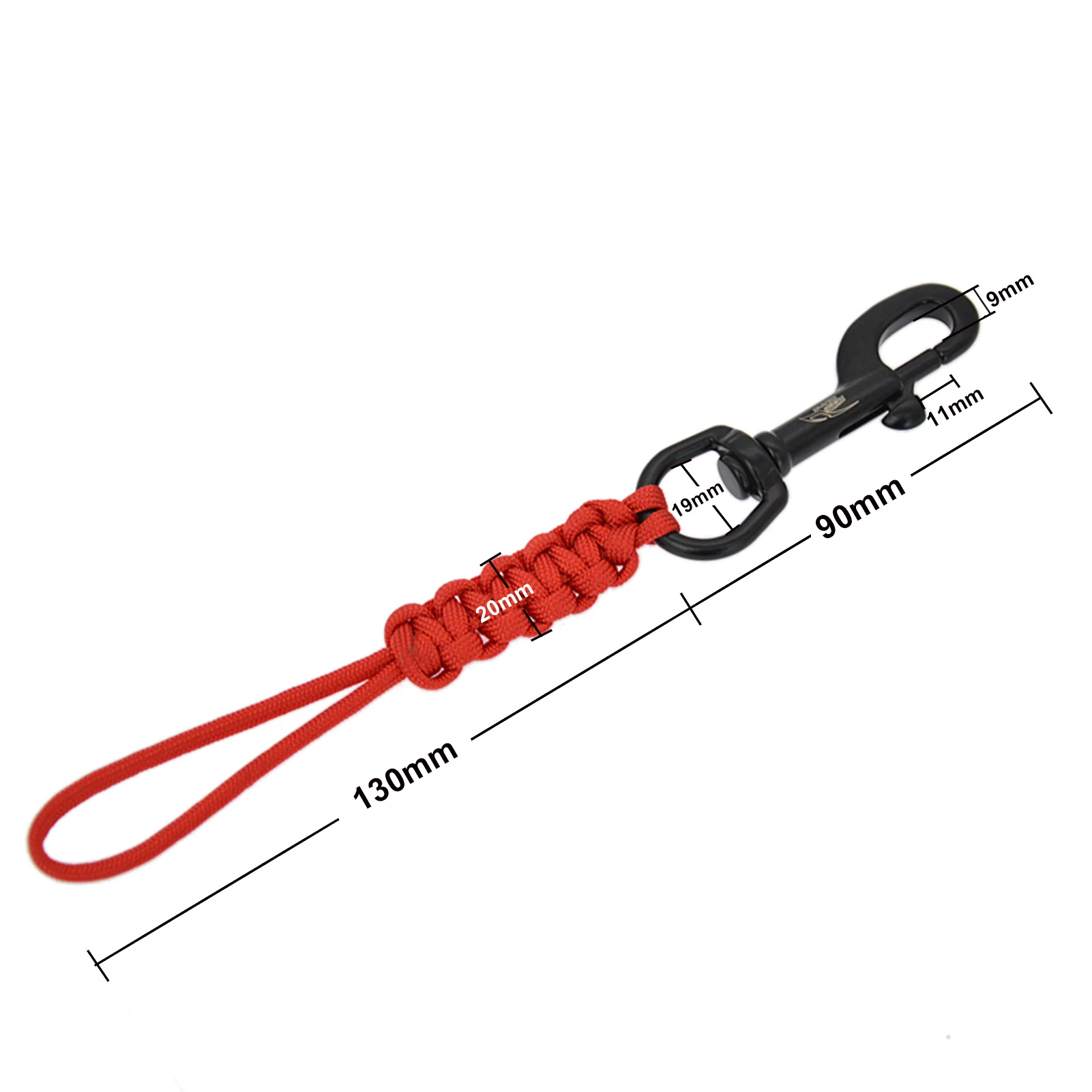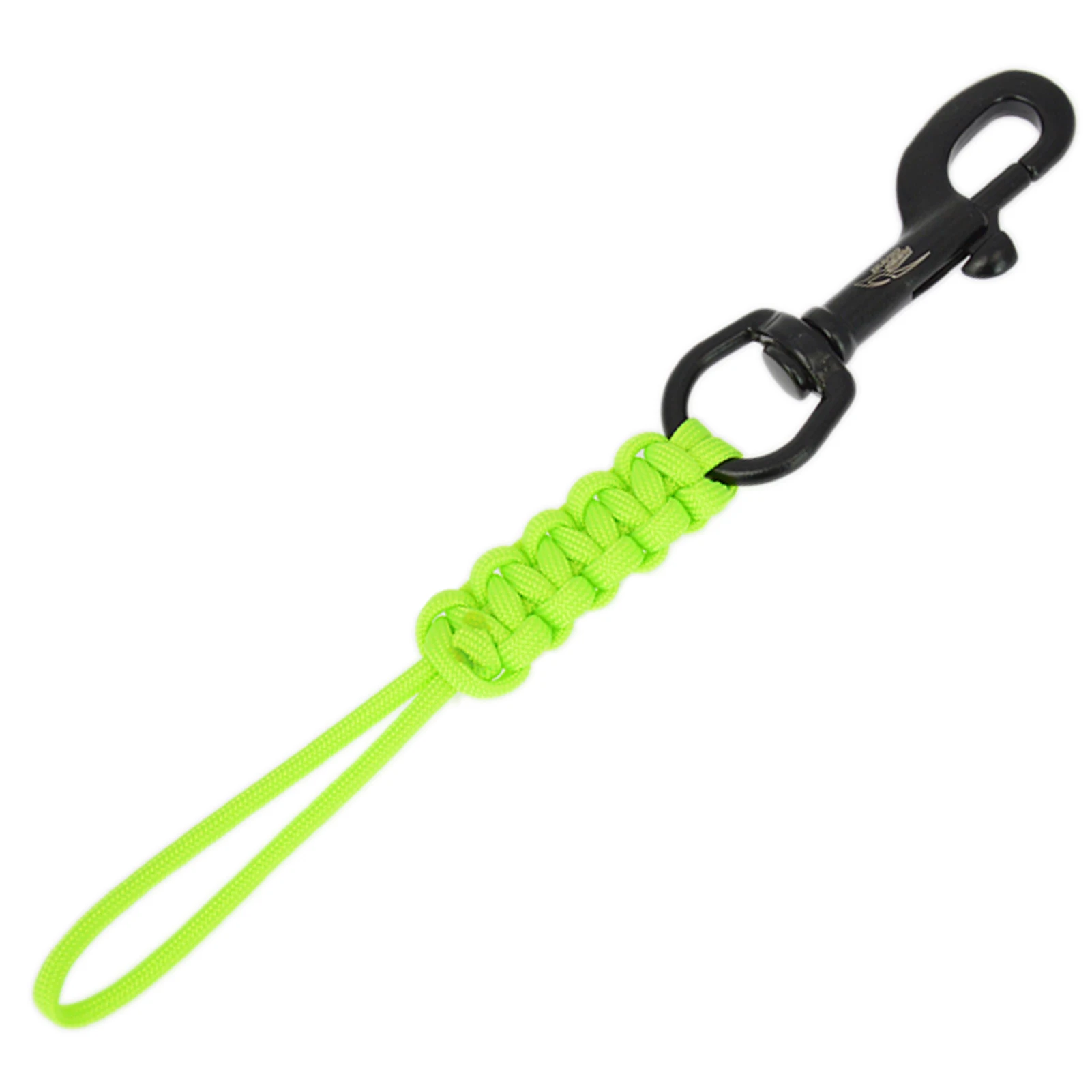 Discover the ultimate companion for your diving adventures with our Scuba Diving Swivel Bolt Snap Hook. Crafted from durable 316 marine-grade stainless steel, this black-colored snap hook ensures strength and corrosion resistance. The assembly features a robust braided nylon paracord lanyard in vibrant hues of light blue and luminous green, designed for reliability even in tough conditions. The neon green lanyard glows in the dark, enhancing visibility during low-light situations. With a total length of 220mm (8.7″) and a 360° swivel hook, easily secure your flashlight, reel, or other accessories while enjoying hands-free convenience.