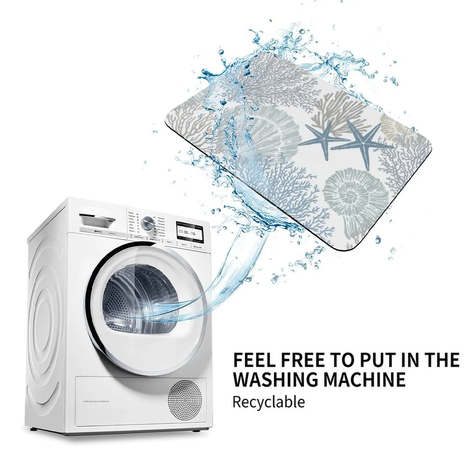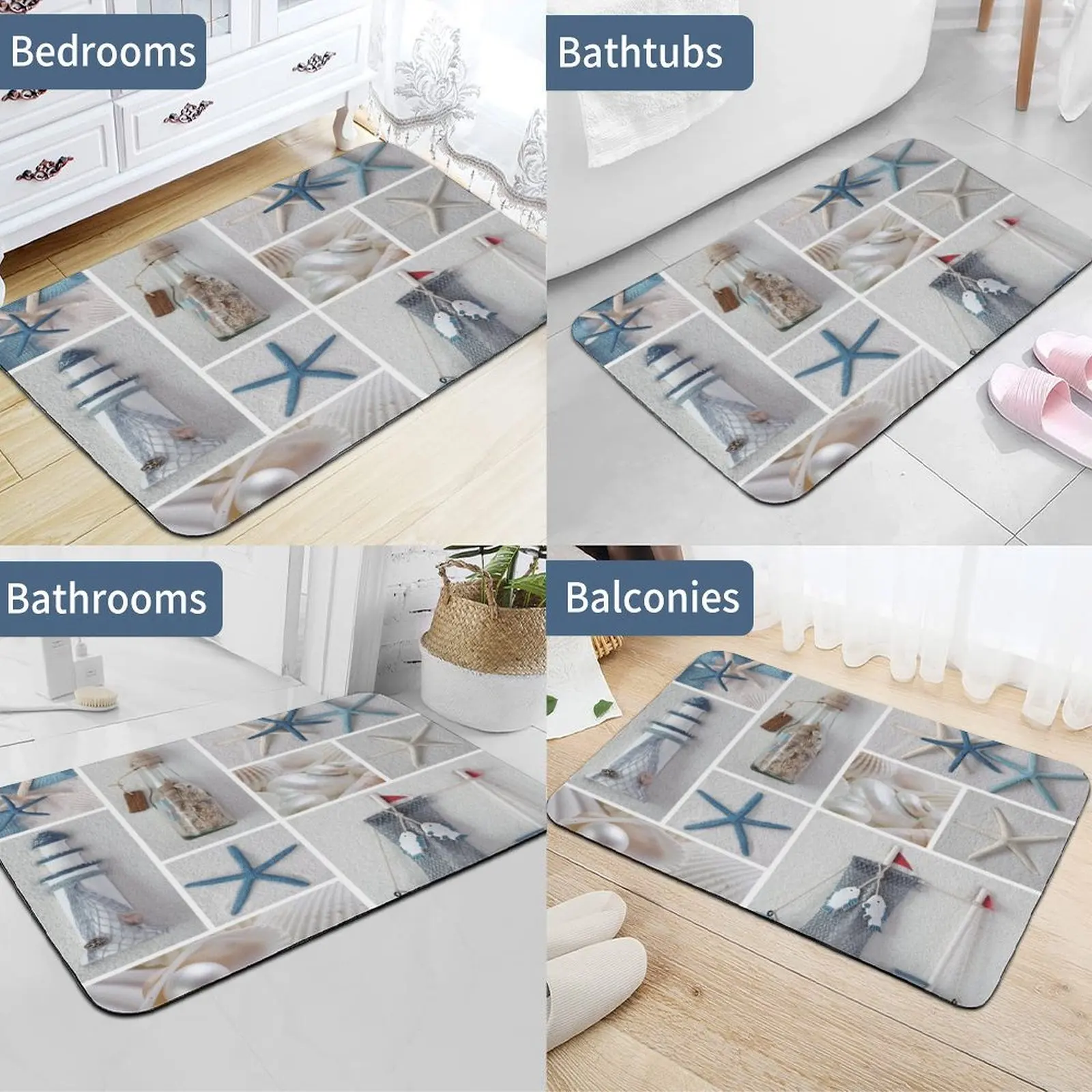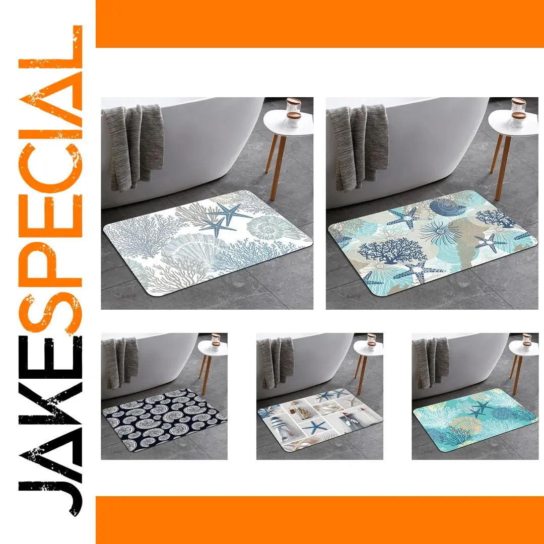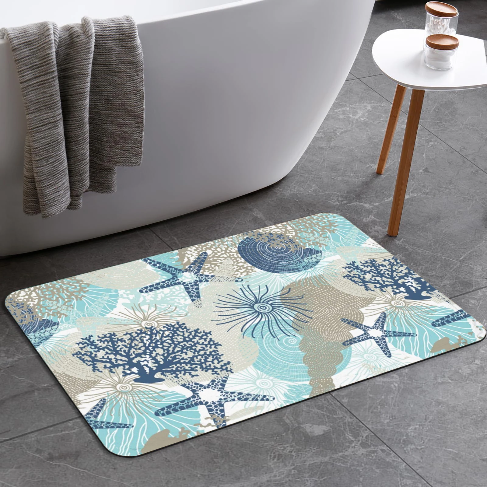 Transform your space with this beautifully crafted, marine-inspired bath mat that brings the calming, lively essence of the ocean into your home. Featuring a detailed pattern of coral, starfish, seashells, and seaweed in shades of blue, beige, and white, this mat adds a decorative touch to any wet or moisture-prone area. Its vibrant design not only enhances your bathroom, kitchen, or laundry room but also provides superior functionality. Made from diatom mud with a rubber non-slip backing, it offers excellent water absorption and quick drying, ensuring safety, cleanliness, and comfort. Lightweight and versatile, it’s perfect for indoor spaces like RV bathrooms, pet areas, or beside sinks, combining practicality with aesthetic appeal.