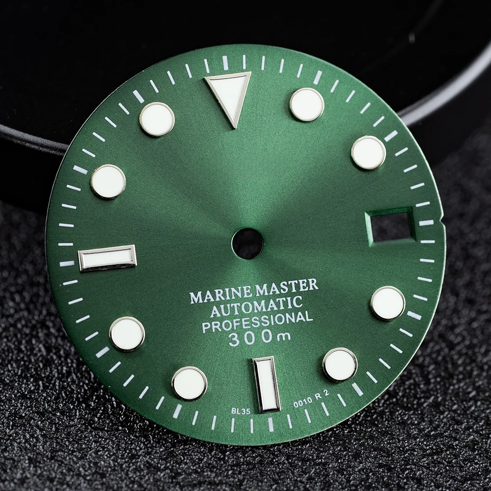 Experience a maritime-inspired aesthetic with this stunning NH35 dial, designed specifically for marine-style automatic watches. Measuring a precise 28.5mm in diameter, this dial features a luminous sunray finish that radiates light in all directions, creating a dynamic and sophisticated look. The dial showcases a sleek “S logo” and is compatible with NH35 and NH36 movements, making it an ideal replacement or modification part for your timepiece. Available in a variety of vibrant and classic colors, this dial enhances the readability and visual appeal of your watch. Its durable construction ensures longevity, while its luminous accents mean you can read the time effortlessly in low-light conditions. Elevate your watch customization with this high-quality, stylish dial.
