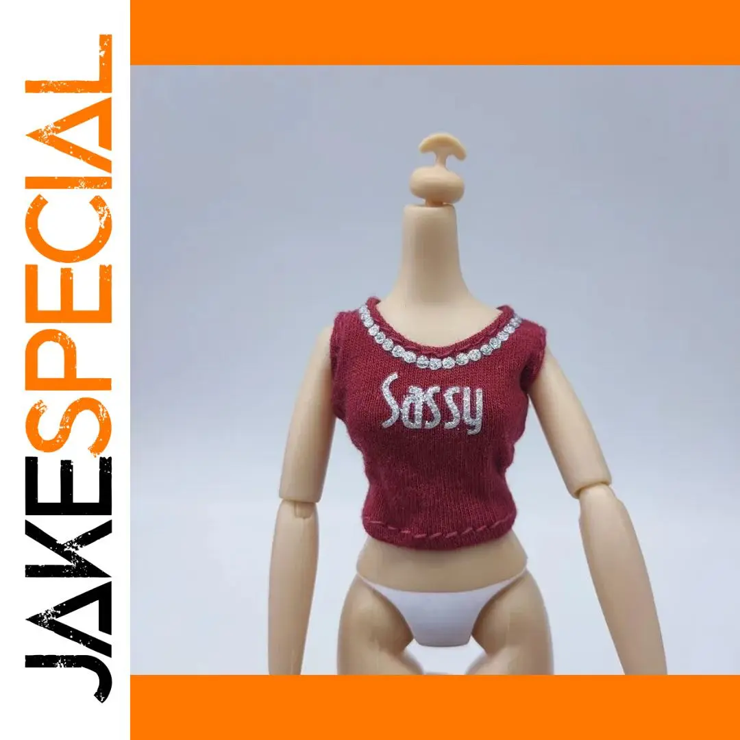 Elevate your Bratz doll collection with this stylish maroon knit top, designed precisely for 1/6 scale figures. The eye-catching design features the word “Sassy” in sparkling silver lettering, set against a plush maroon background, bringing a playful vibe to any outfit. Crafted from high-quality fabric that ensures durability, the top's flexible fit allows for versatile posing, enhancing your doll's display options. Remember, the doll shown is for illustrative purposes only and is not included. This fashionable piece creates an elegant statement without overshadowing your beautifully styled dolls.