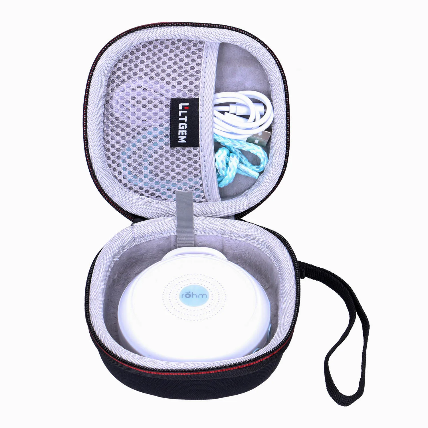 Imagine having your Marpac Rohm portable white noise sound machine perfectly protected and organized during every trip. This custom-designed plastic carrying case offers a sleek and modern look with its smooth, matte black finish and rounded oval shape. The durable EVA material ensures shockproof, semi-waterproof, dustproof, and wear-resistant protection, keeping your device safe from everyday hazards. Its compact design makes it lightweight and easy to carry, especially with the comfortable handle. Inside, soft padding secures the sound machine, while a semi-transparent mesh pocket stores accessories such as charging cables and cords. Travel with confidence knowing your device is stored securely in this stylish, functional case.