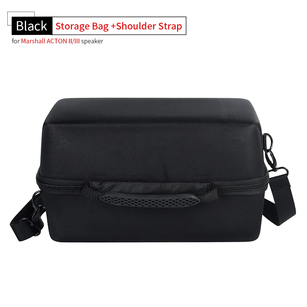 The portable storage case for the Marshall Acton II and Acton III speakers is the perfect companion for your audio experience. Crafted from tough black EVA material, this case not only protects your speaker but also adds a touch of sleek elegance. The interior features soft, shock-absorbing fabric that cradles your device, while the well-stitched, durable exterior ensures longevity. Equipped with a convenient zipper and a snug impression for a secure fit, this case enhances travel convenience with a detachable shoulder strap and portable handle. Your speaker will be safe and stylish whether you're heading to a friend's house or enjoying a day out.