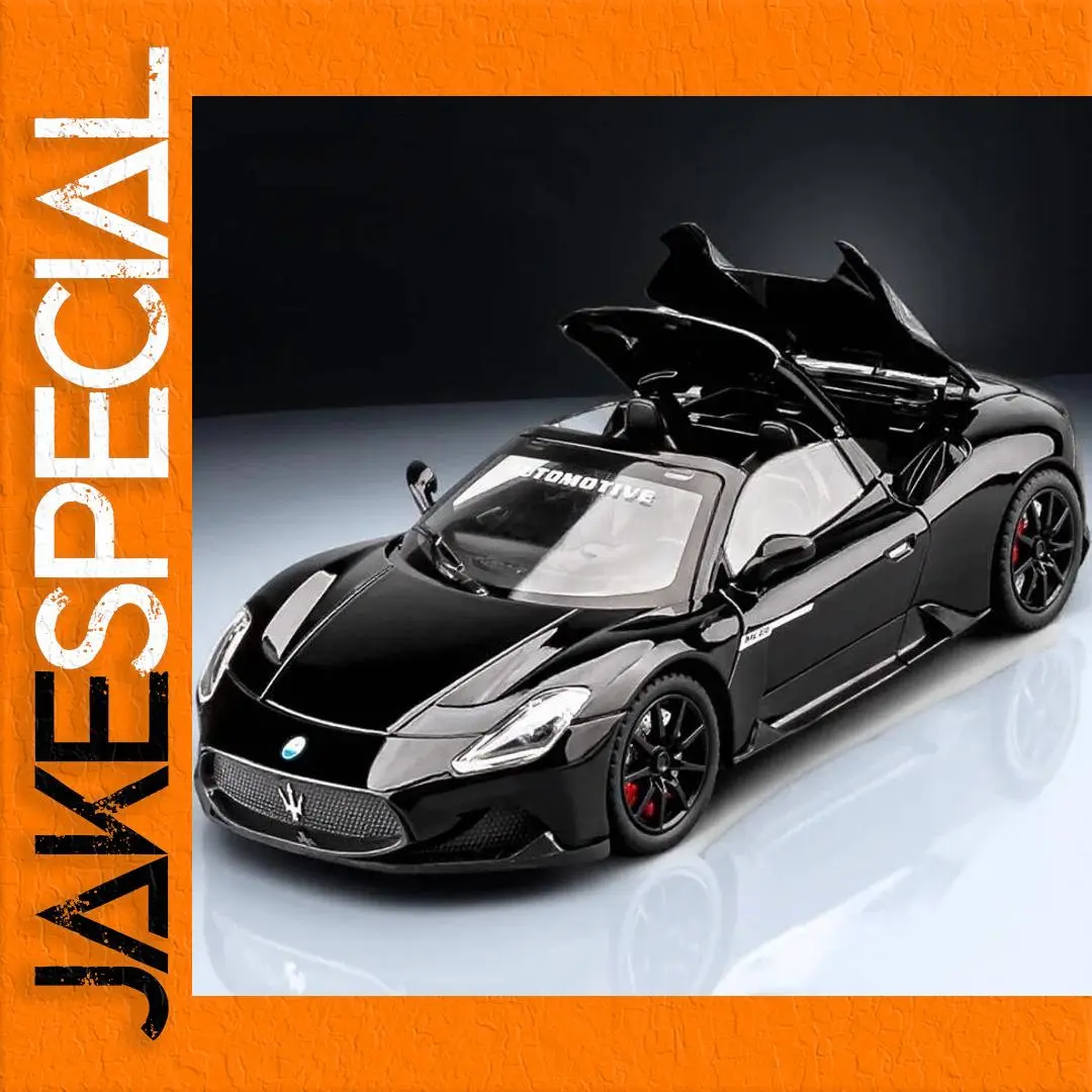 The 1/24 scale Maserati MC20 Cabrio Alloy Sports Car Model is a stunning diecast replica that captures the essence of this iconic vehicle. Finished in an eye-catching glossy black, this model boasts intricate details like the finely crafted grille with the unmistakable Maserati emblem. Dive into the beauty of its smooth contours and articulated elements that allow you to admire the detailed interior through the clear windshield. The matte black wheels, accented with red brake calipers, deliver a bold contrast that enhances its sporty aesthetic. This model will surely be a delightful addition to your collection, showcasing your passion for exquisite automotive design.
