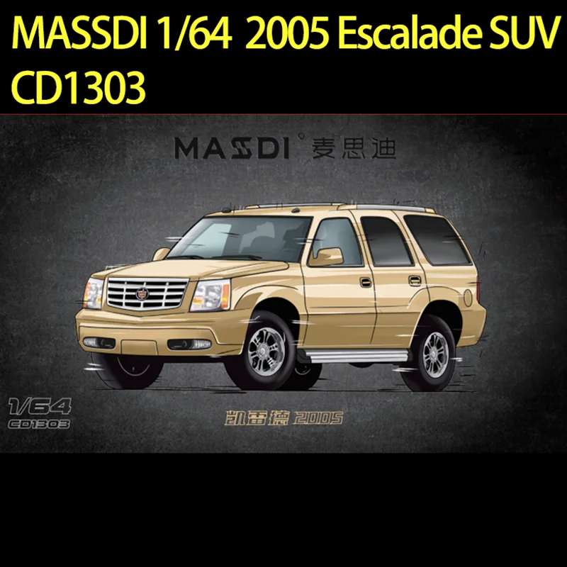 Immerse yourself in the world of luxury automobiles with this exquisite 1:64 scale diecast model of the 2005 Cadillac Escalade SUV by MASSDI. This stunning collectible features a luxurious gold color with a shiny metallic finish that beautifully captures the essence of the iconic vehicle. The intricate detailing of the front grill and the embossed Cadillac emblem add a touch of authenticity, while the alloy rims and rubber-like tires enhance its realistic look. This decorative model is perfect for display, gift-giving, or simply relishing the craftsmanship of one of the most memorable SUVs ever made.