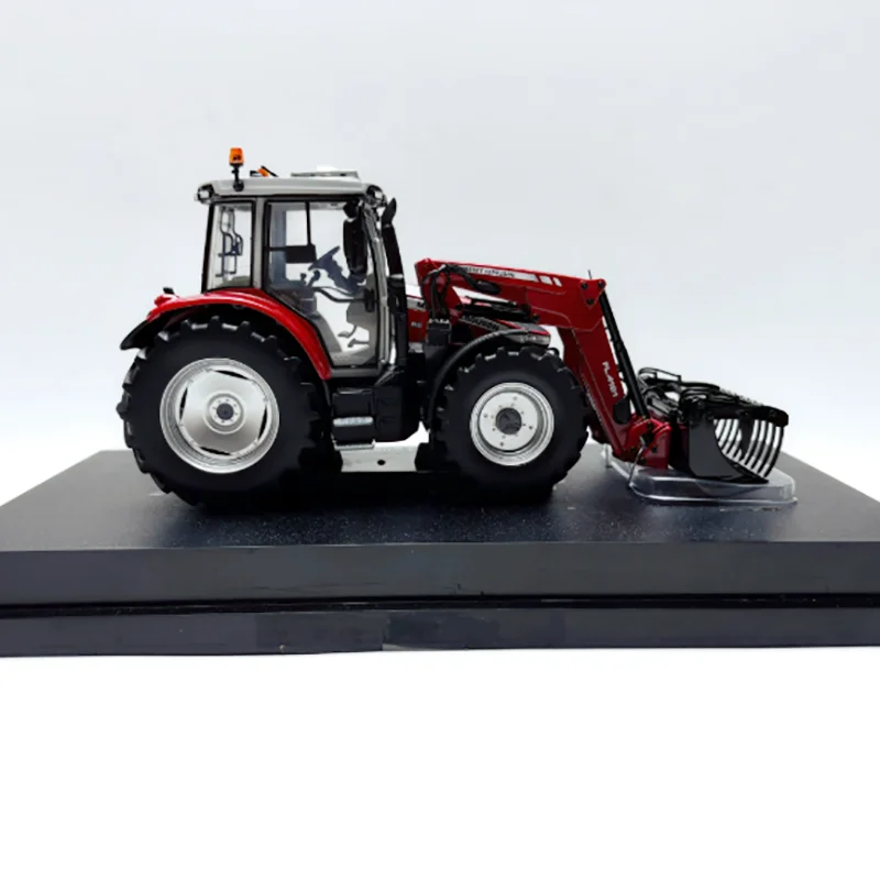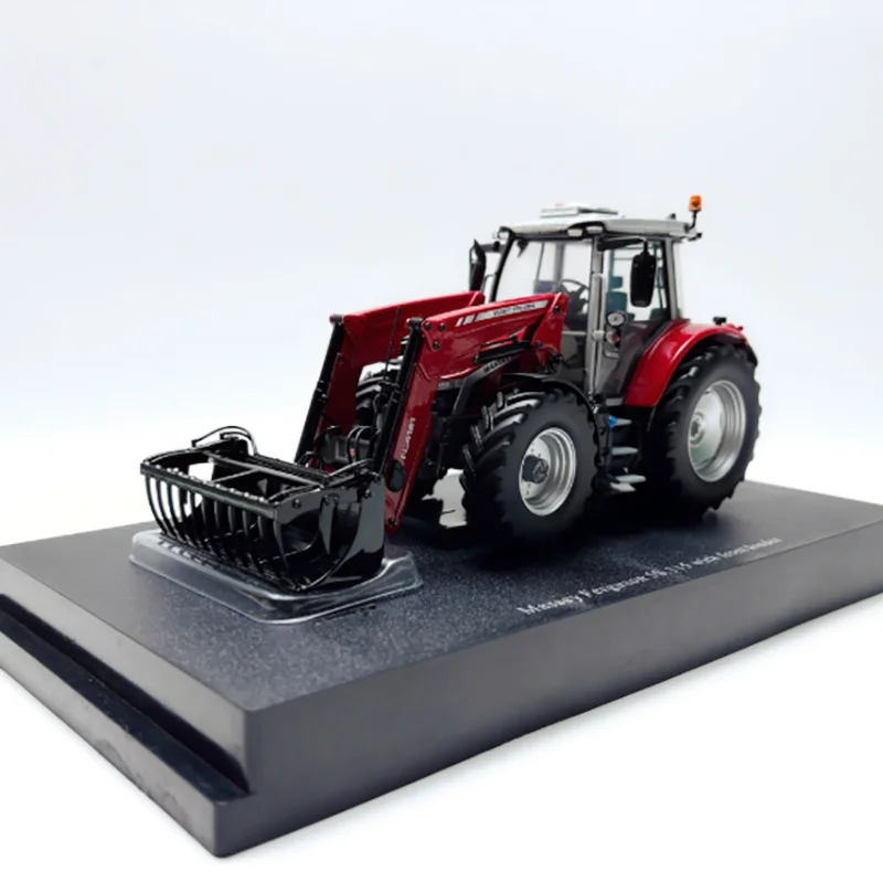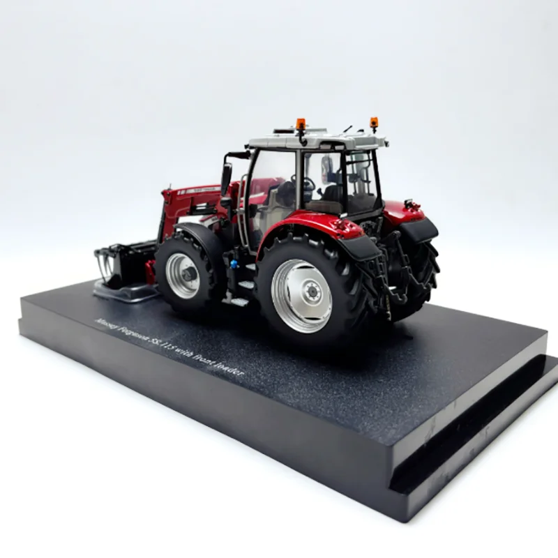 Experience the appeal of the highly detailed 1/32 scale diecast model tractor inspired by the Massey Ferguson 5S.115. Crafted from alloy and plastic, this model boasts vibrant, realistic colors with a bright red body and cab, contrasted by black attachments and tires. The clear, miniature windows reveal detailed internal features, while the textured surfaces and precise proportions lend an authentic, industrial charm. The front loader, with its curved, black design and jointed hydraulics, emulates the real machinery's functionality. Silver hubs on treaded tires provide a captivating visual contrast, emphasizing craftsmanship and attention to detail. Perfect for collectors, enthusiasts, and as an impressive display piece, this model captures the essence of rugged agricultural machinery with precision and style.
