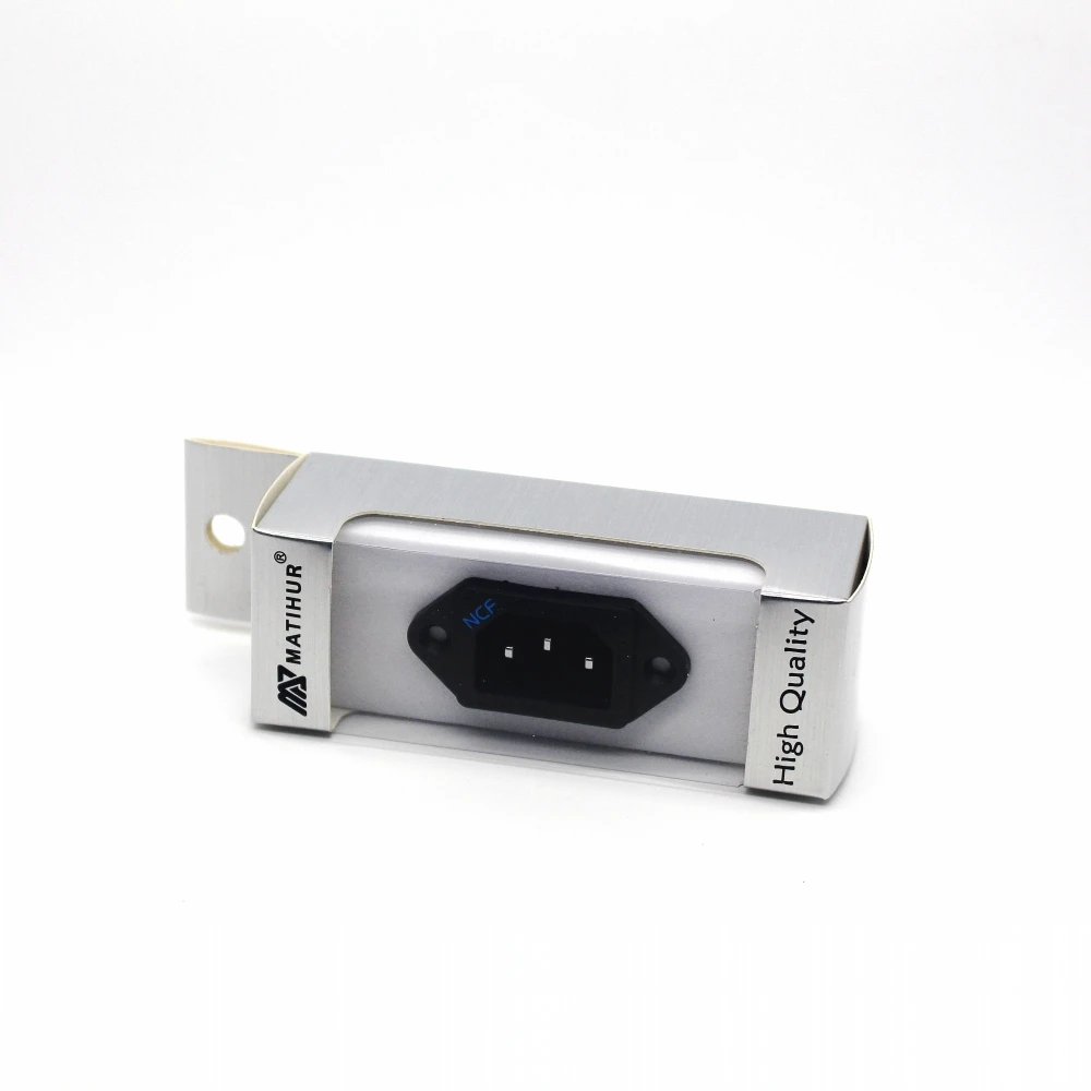 The MATIHUR FI-06 NCF (R) AC IEC Inlet is a meticulously crafted component designed to elevate your audio performance to new heights. With its sleek rectangular frame and deep black finish, this inlet is not just an essential part of your audio setup but also a statement of quality and sophistication. It features a pure copper electrode for superior conductivity and incorporates a unique NCF formulation within its insulation of nylon and glass fiber to combat static interference. You'll appreciate the robust design, including its screw-tightening structure for secure wire mounting, while enjoying the clear, unhindered sound that enhances your listening experience.