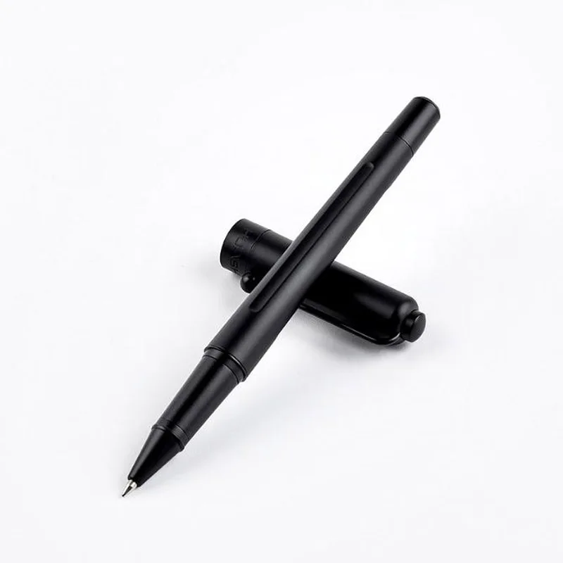 Experience sophistication with this high-quality matte black ballpoint pen, perfect for everyday office and school use. Its sleek, cylindrical metal body combines durability with a minimalist design. The smooth, streamlined surface and subtle semi-transparent window add visual interest while maintaining a clean aesthetic. The rounded cap and end piece seamlessly match the matte black finish, delivering a modern yet timeless look. Equipped with a high-precision 0.5mm metal tip, it provides crisp, reliable lines with every stroke. Supporting blue and black non-erasable ink through a spiral refill system, this pen combines functionality with style. Ideal for those who value quality, this pen elevates your professional stationery collection and can be customized for corporate branding.