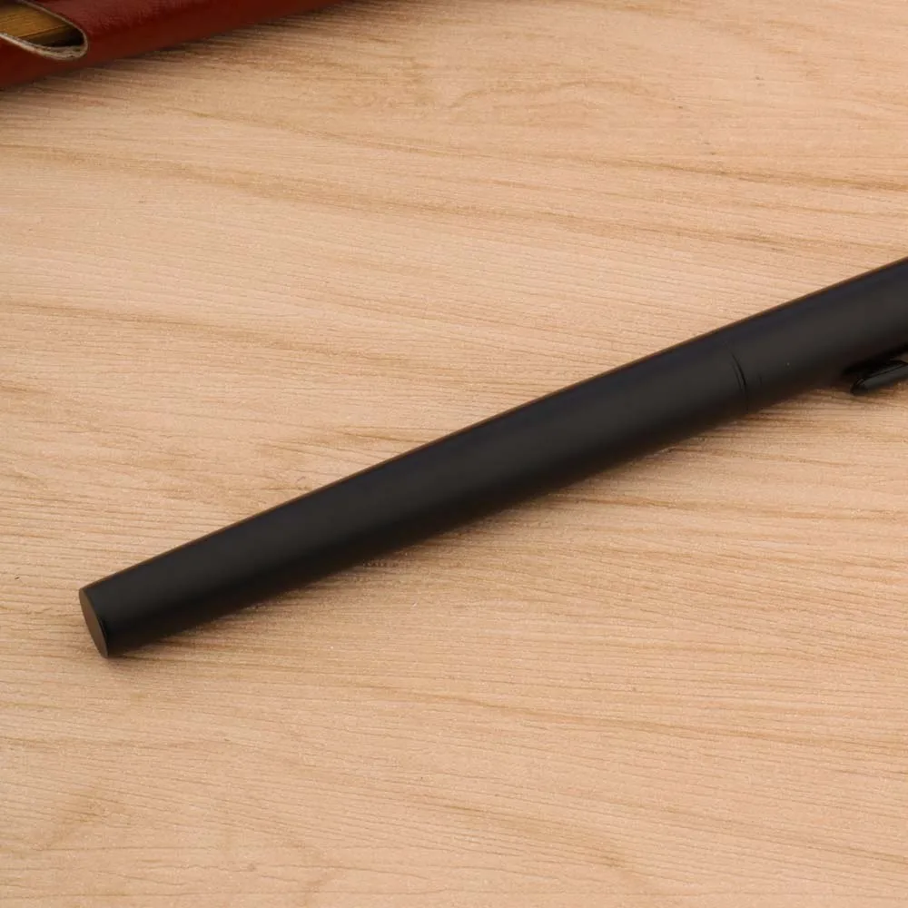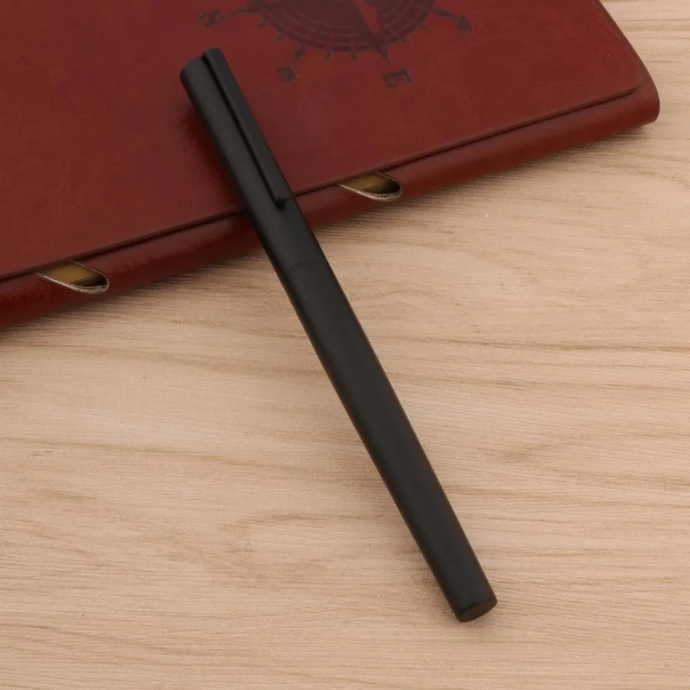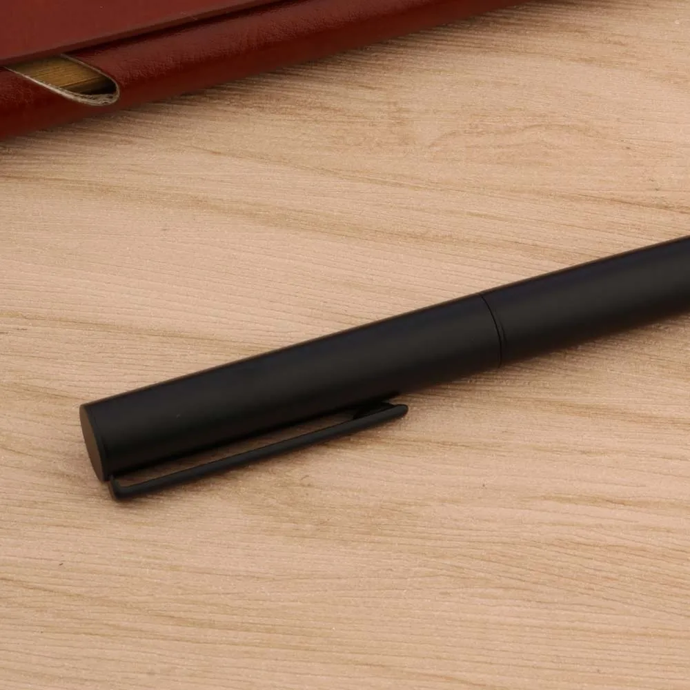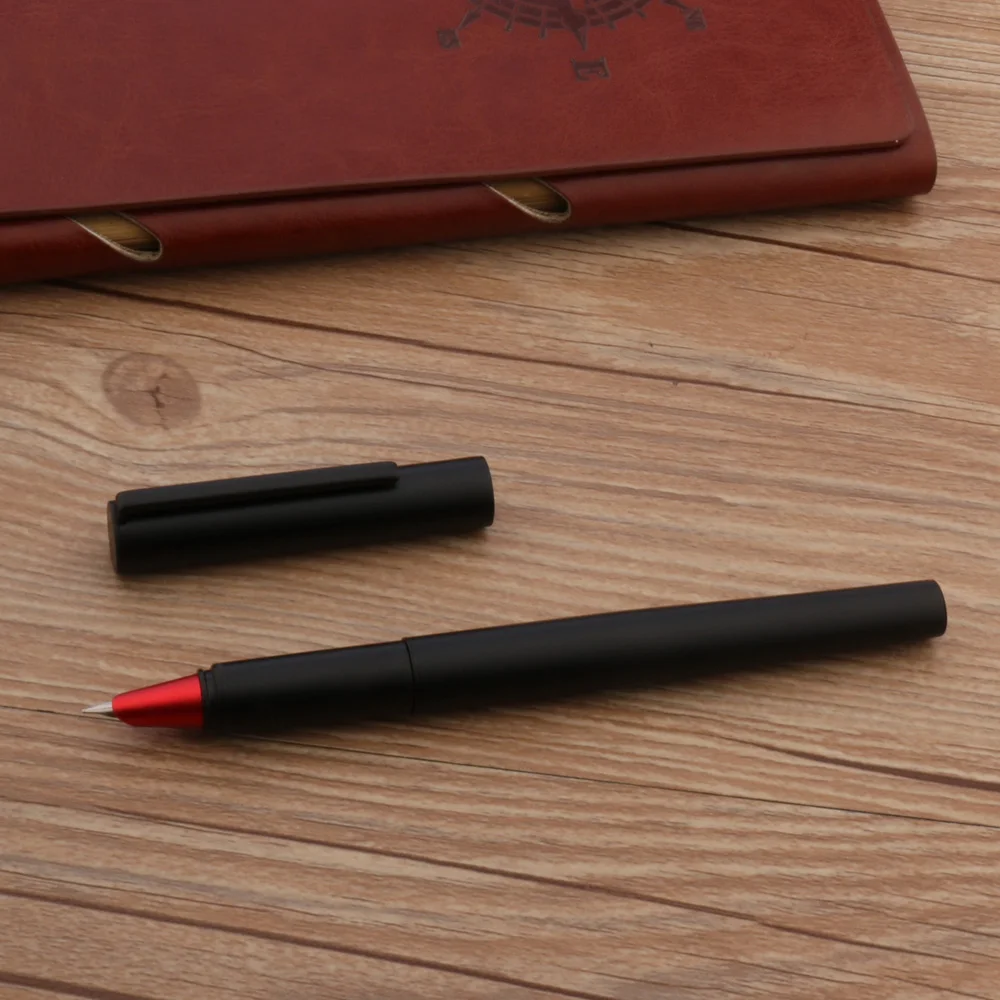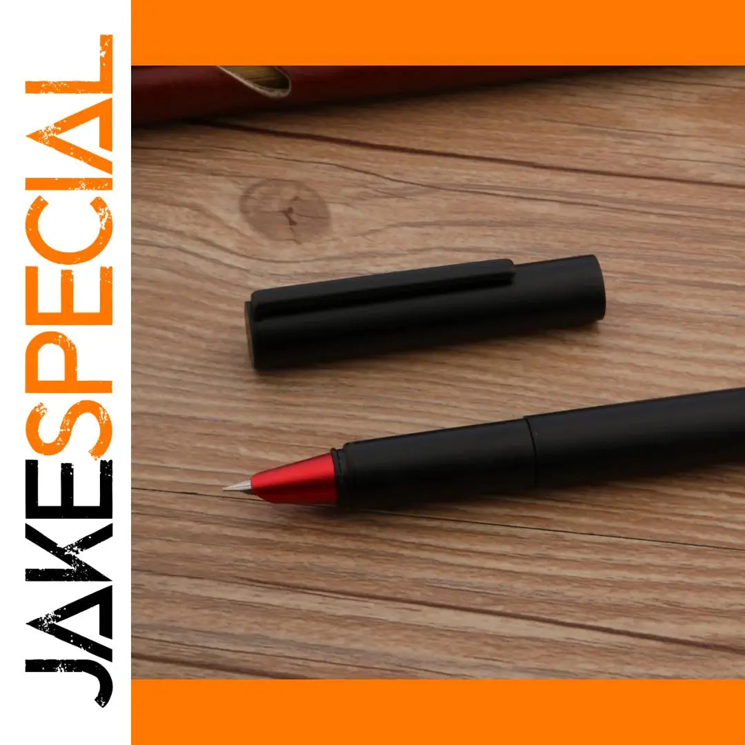 Immerse yourself in the experience of writing with this elegant fountain pen, crafted from durable matte black metal. Its sleek, cylindrical silhouette exudes sophistication and modern minimalism, perfect for professionals and enthusiasts alike. The contrasting vibrant red tip adds a stylish pop of color, making it easy to locate and use. Feel the smooth finish in your hand, which provides a luxurious, understated touch. Designed for comfort and precision, this pen offers a fine 0.38mm nib, ideal for detailed writing, sketches, or notes. Its durable construction and refined design make it a perfect everyday writing instrument, blending style with function seamlessly.