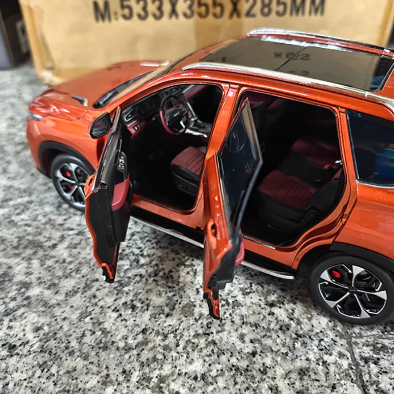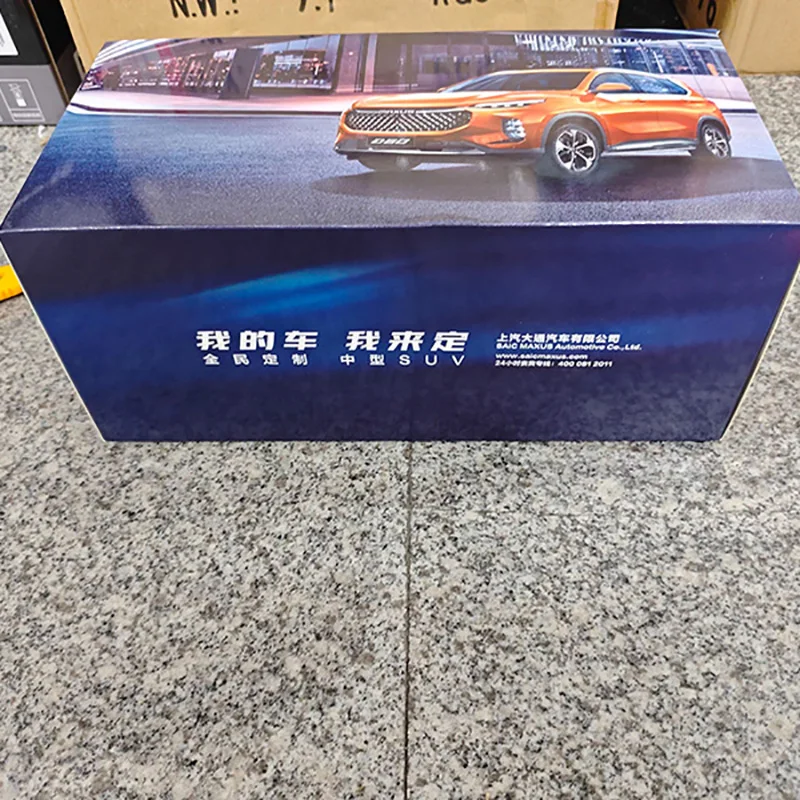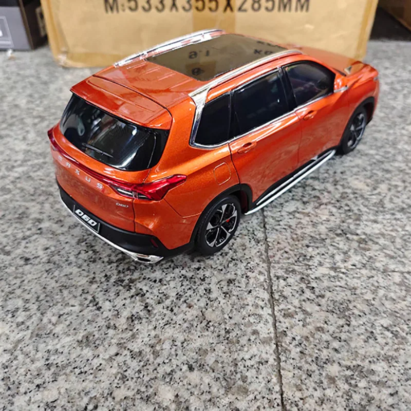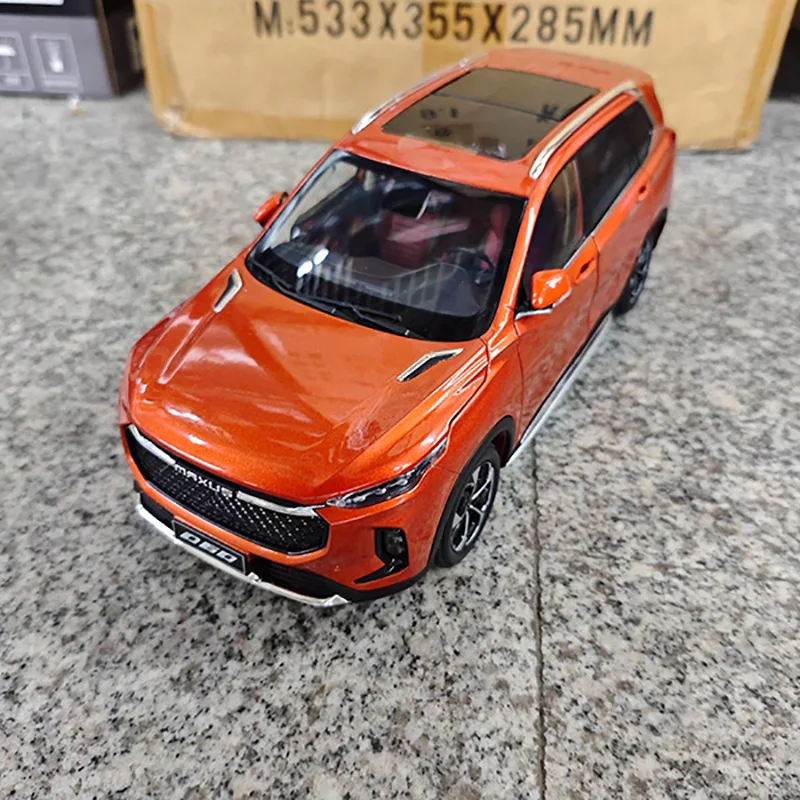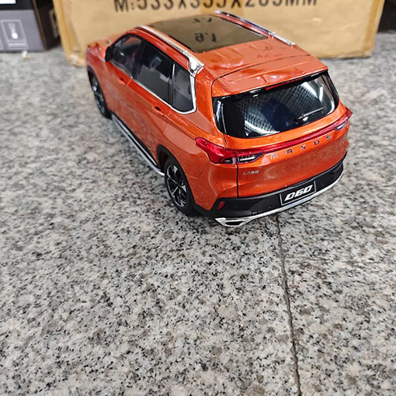 This 1:18 scale diecast model of the Maxus D60 off-road SUV features a vibrant orange alloy body with sleek, modern detailing. Crafted from alloy and rubber plastic, it boasts realistic design elements such as a honeycomb-pattern grille, narrow headlights, sculpted aerodynamic side lines, and distinctive character lines along the body. The dark roof is accented with metallic trim, and the wheels feature black rims with silver details for an authentic alloy appearance. With meticulous craftsmanship and attention to detail, this collectible model is perfect for display, appreciation, or as a thoughtful gift for adult enthusiasts.