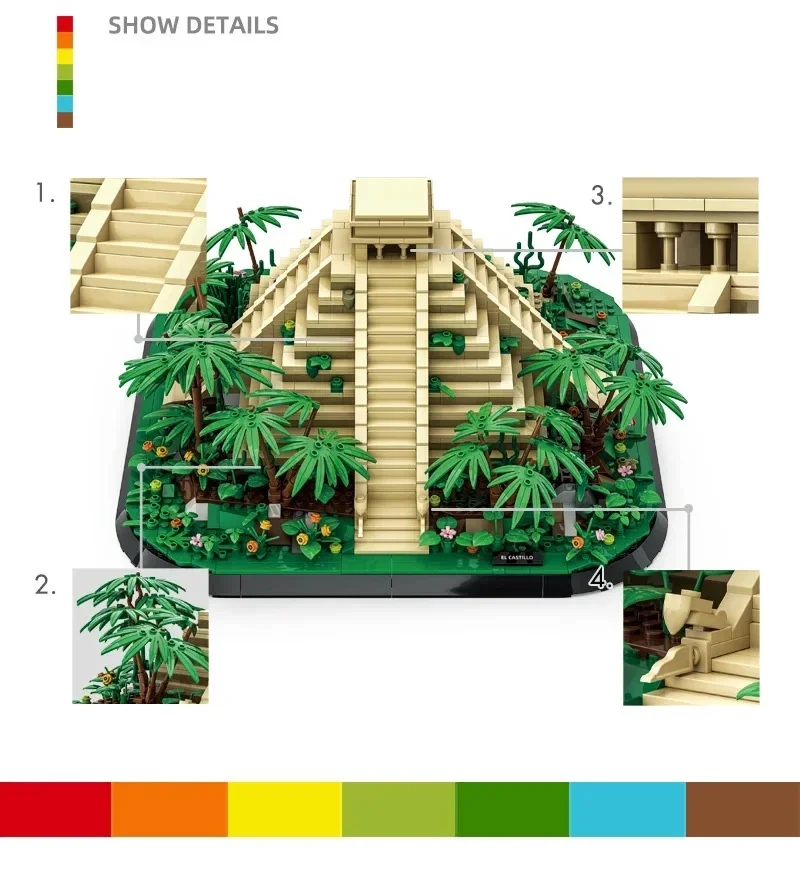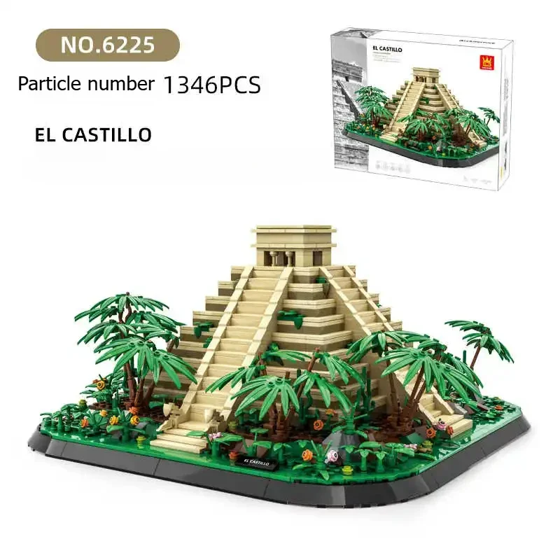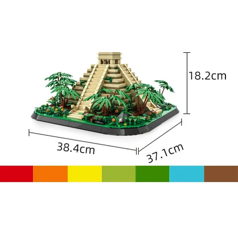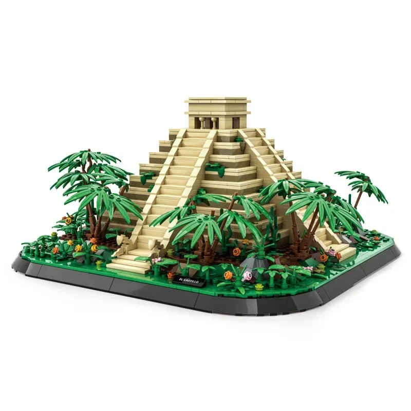 Create a stunning replica of Mexico’s ancient Kukulcan Pyramid with this detailed set of 1,346 high-quality ABS plastic micro building blocks. Measuring approximately 38.4 x 37.1 x 18.2 cm and weighing around 3 kg, this unisex puzzle set features a stepped pyramid with symmetrical staircases, a flat summit with a miniature temple, and vibrant surrounding foliage including green fronds, brown trunks, and colorful orange and pink blossoms. Designed for adults 18+, the durable, non-toxic, and safe blocks have smooth surfaces and circular edges. Perfect for collectors, builders, and enthusiasts, it offers an engaging educational experience while showcasing authentic Mayan architecture.