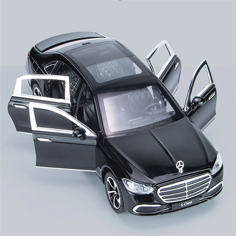 Experience the luxury of this highly detailed Maybach S400 model, crafted to perfection with a sleek glossy black finish. Measuring accurately at 1:22 scale, it brings the sophistication of the actual vehicle to your collection. The smooth, flowing lines and elegant curved roofline highlight its stylish silhouette, while chrome accents on the grille and bumper add a refined touch. The transparent windows reveal a meticulously crafted interior, demonstrating exceptional craftsmanship. Alloy and plastic materials ensure durability and realism, with alloy-like multi-spoke rims enhancing the high-end aesthetic. This model’s precision details include door handles, side molding, and trim accents—perfect for display or as a collector’s piece that exudes class and craftsmanship.