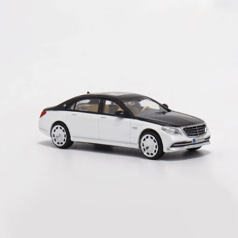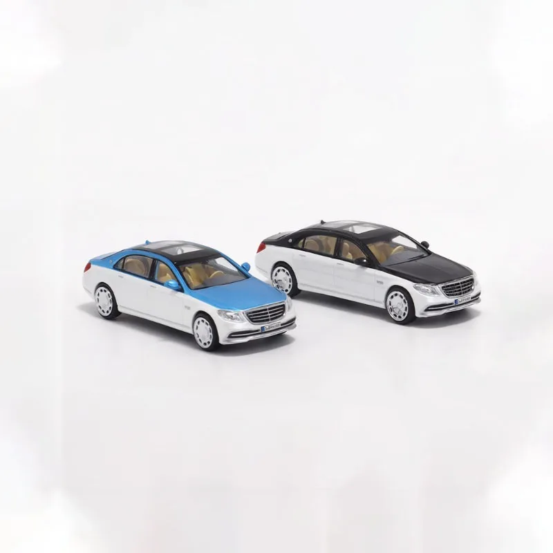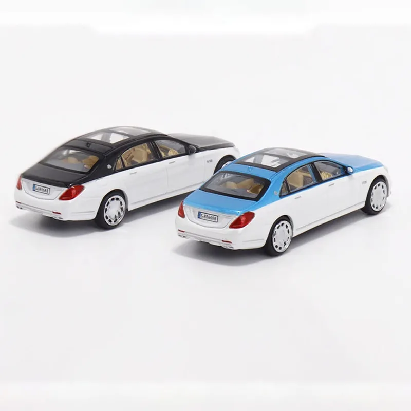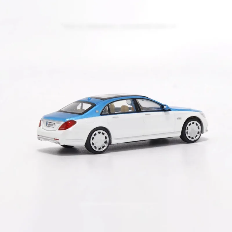 Imagine adding this exquisite diecast Maybach S650 X222 to your car collection. Crafted with meticulous attention to detail, this model captures the luxurious essence of the real vehicle. Its sleek design features a glossy two-tone color scheme with a metallic blue roof paired with a pristine white body, creating a striking visual contrast. The other option sports a sophisticated black roof and mirror caps with a white chassis, perfect for collectors seeking elegance. Both models boast a polished, smooth finish, clear windows revealing realistic beige interiors, and intricately detailed front grilles, headlights, and side mirrors. The white wheels with hubcaps and tire treads add a touch of realism, making it an ideal display piece that radiates luxury and craftsmanship in every detail.