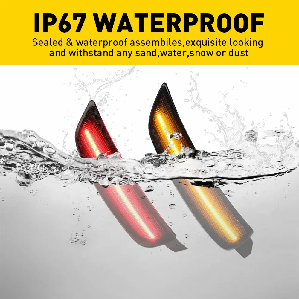 Imagine elevating your Mazda MX-5 Miata with these sleek, smoked lens LED side marker lights. Their dark-tinted, modern design seamlessly blends with your vehicle's contours, adding a sophisticated touch. The streamlined, elongated shape follows the natural curves of your car, making it look polished and high-performance. Equipped with bright LED strips that emit vivid amber and red light, these lights improve visibility and safety during night driving or adverse weather. Made with durable materials and ultrasonic waterproof technology, they promise longevity and reliable performance for over 50,000 hours. Installing these lights is straightforward, turning your MX-5 into a more stylish, safer, and personalized vehicle.