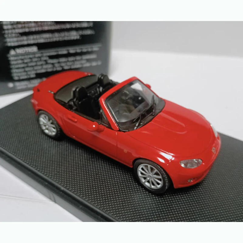 Experience the thrill of owning the stunning 1/43 scale diecast model of the Mazda MX5 Roadster 2005. Adorned in a vibrant red finish, this model captures the roadster's sporty essence and intricate details. Its sleek body features an open convertible design, allowing you to admire the meticulously crafted interior with seats and dashboard on display. The iconic Mazda emblem sits proudly between rounded headlights, creating a striking front view. Supported by a textured black base that simulates carbon fiber, this piece not only serves as a conversation starter but also a perfect addition to your collection or display. Perfect as a gift, it appeals to enthusiasts and collectors alike.