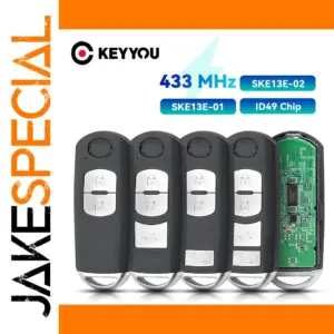 - Operates at 433MHz frequency with model variants SKE13E-01 and SKE13E-02, requiring programming and blade cutting at a professional locksmith or dealer.