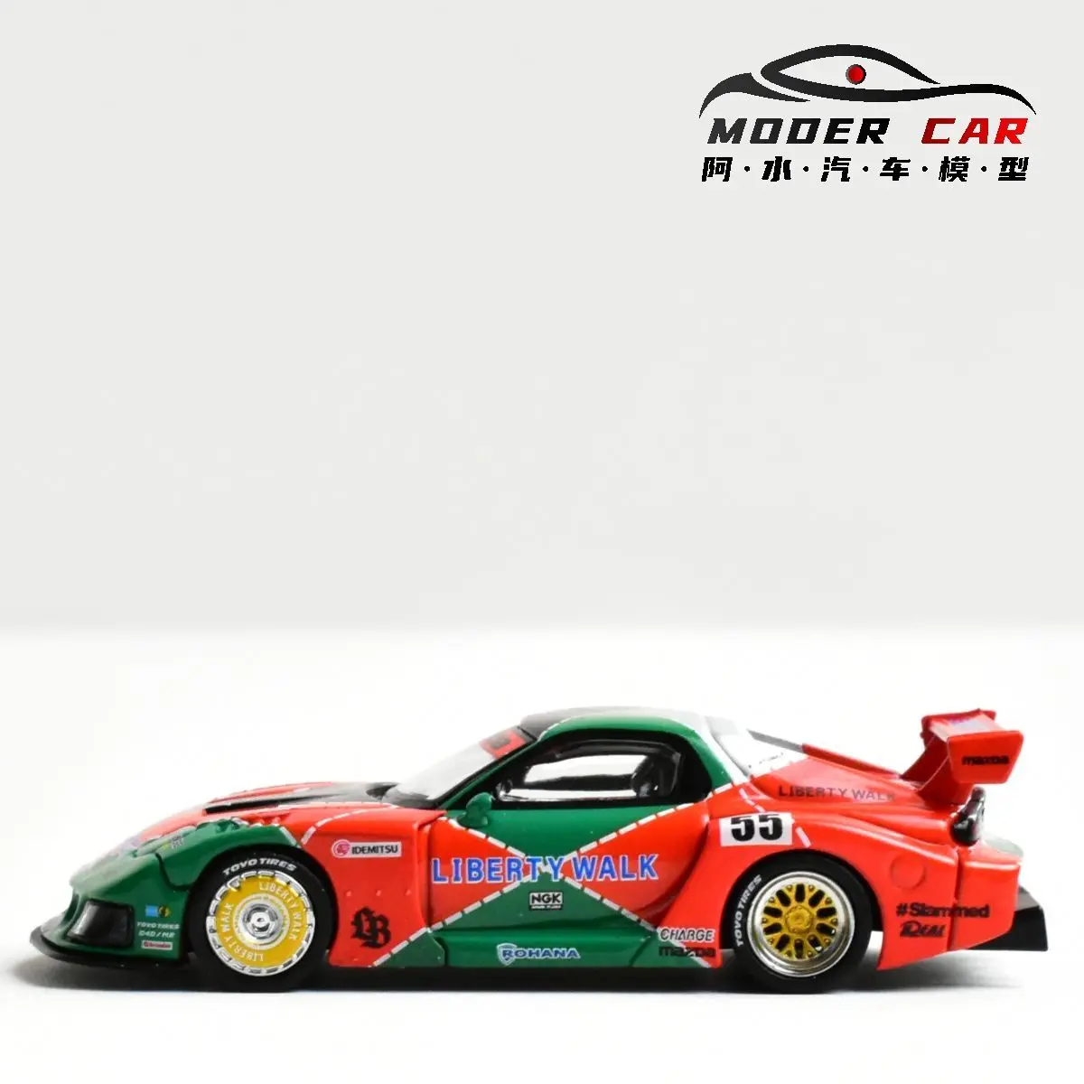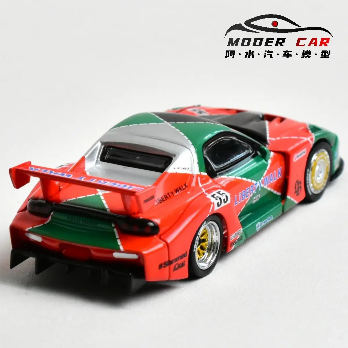 - Includes a large rear wing painted in bold red with “Liberty Walk” in blue, horizontal supports, and wide rear fenders for an aggressive, performance-oriented appearance.