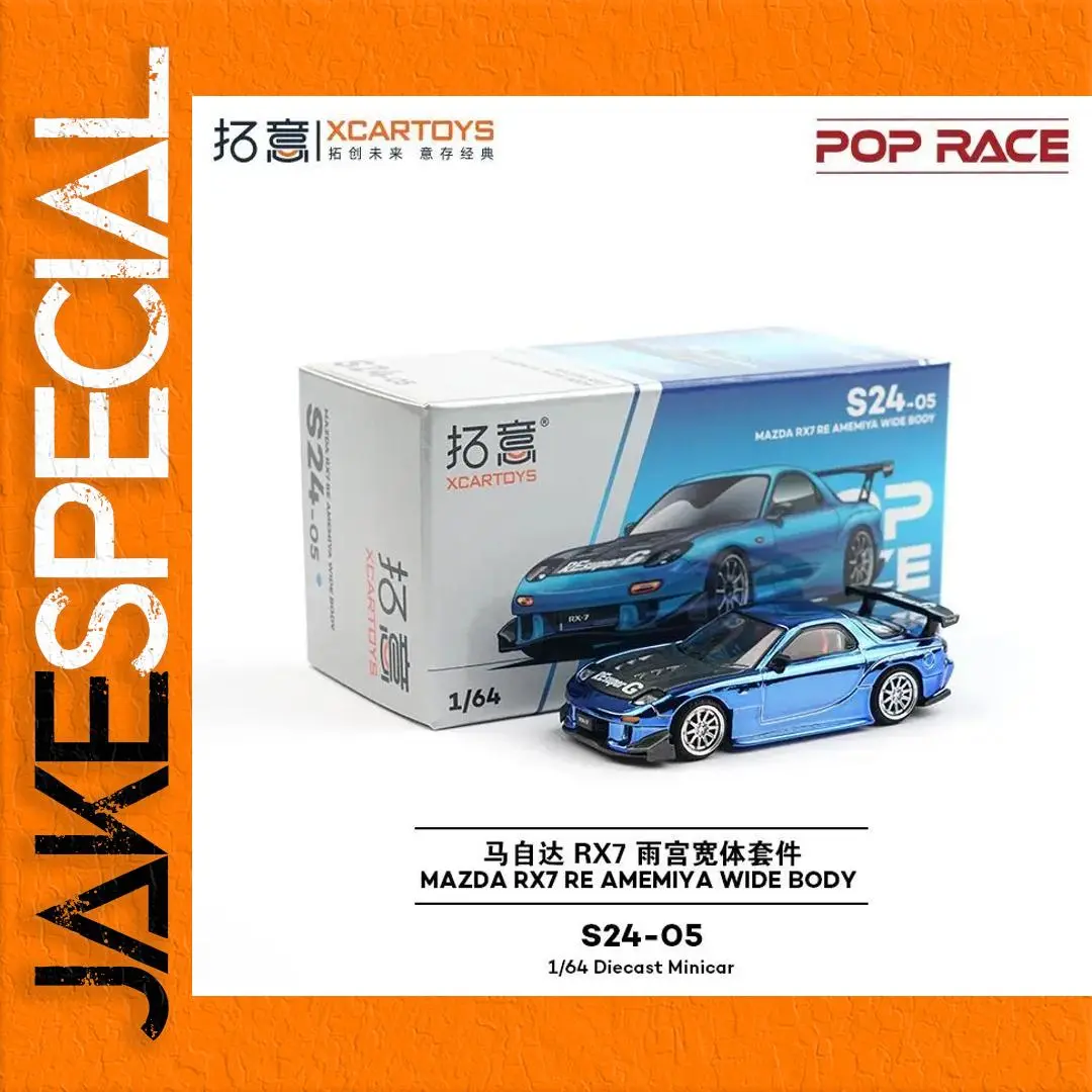 The 1:64 scale alloy Mazda RX7 FD racing car model is a stunning representation in a striking blue color, known as S24-05. This diecast model features a sleek and aerodynamic design, complete with a prominent rear wing and aggressive front bumper for a sporty look. Its glossy, reflective paint highlights the car’s curves, while racing rims and low-profile tires enhance its performance aesthetic. Detailed elements include realistic headlights, taillights, and intricate decals that reflect true motorsport culture. This model is a perfect addition for collectors, showcasing superior craftsmanship and attention to detail.