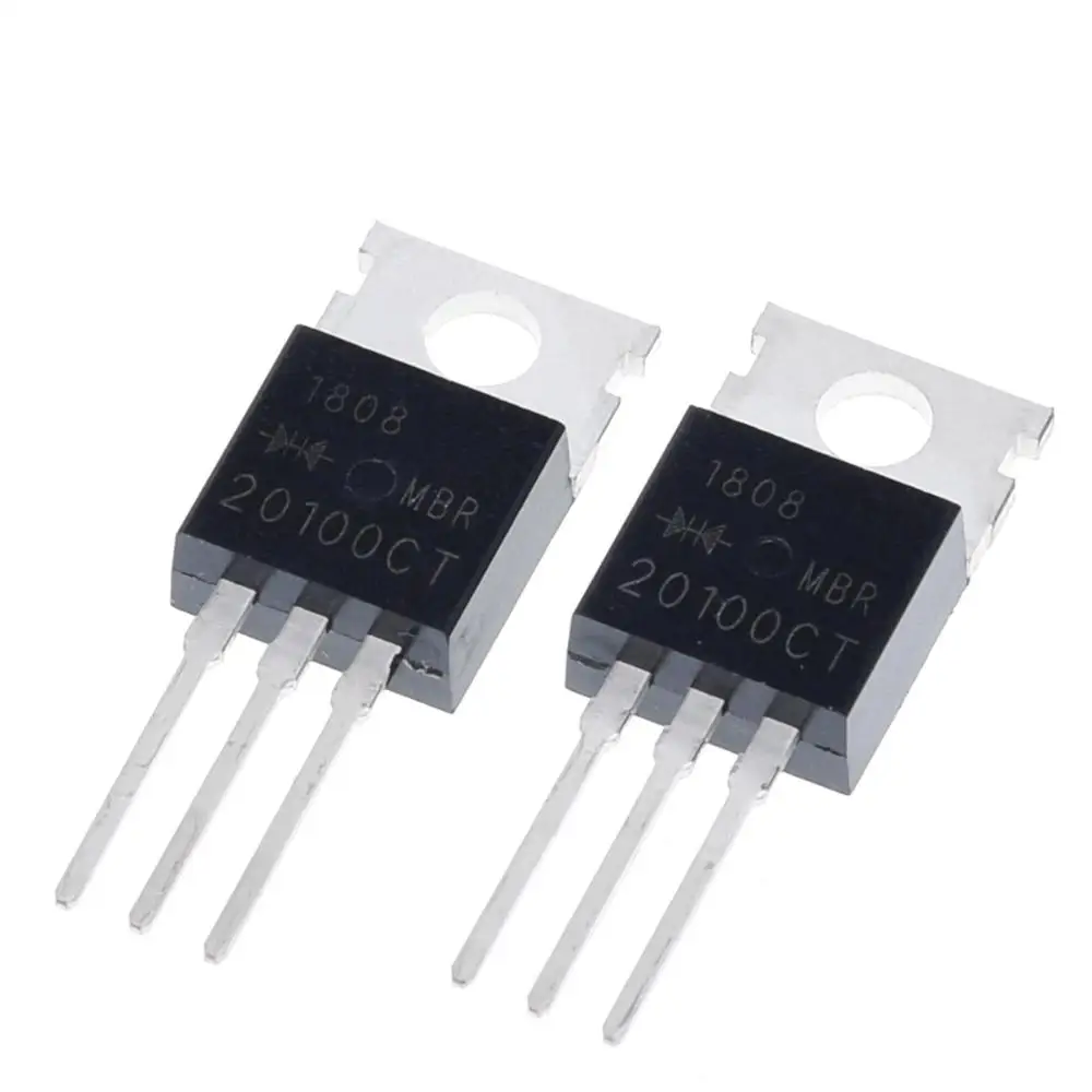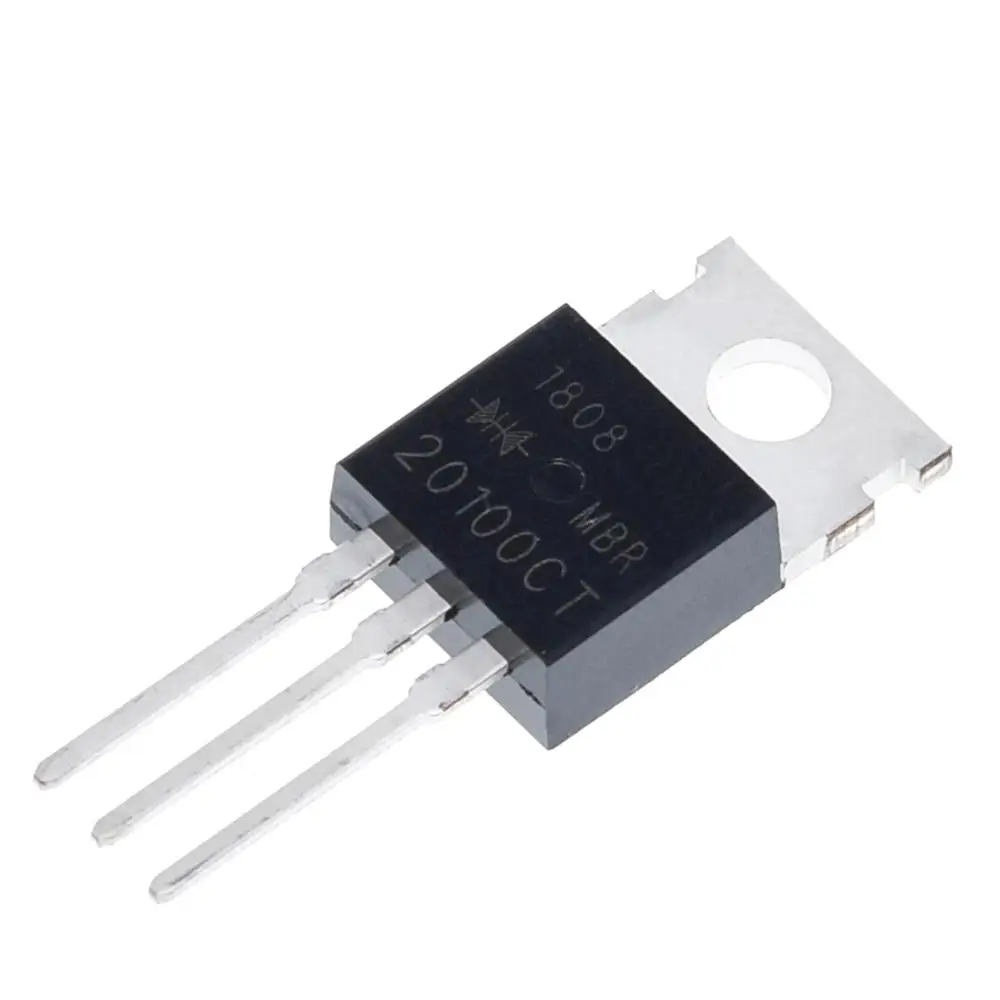 Enhance your electronic projects with this set of durable MBR20100 voltage regulators, crafted to deliver reliable power management. Featuring a sleek, industrial design, each module boasts a rectangular metallic body with a matte black top surface engraved with the model number and branding, emphasizing technical precision. The protruding metal leads allow easy insertion into circuit boards and ensure solid electrical connections. The flat, square-shaped metal heat sink or mounting tab with a central circular hole provides excellent heat dissipation and secure attachment, making these regulators perfect for demanding environments. Suitable for switch and sensor applications, especially in STM-based systems, these components blend efficiency with robust construction. Trust in their quality to keep your electronics running smoothly and safely.