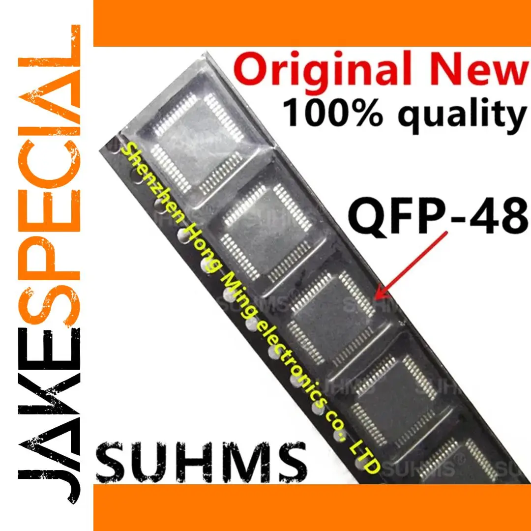 Experience reliable power management with this new MC9S12C64VFAE voltage regulator module in a QFP-48 package, compatible with MC9S12C64, MC9S12C64VFAE, and MC9S12C64CFAE models. Designed for computer applications, it features a sleek black rectangular body measuring approximately 12mm x 12mm with 48 silver-plated contact pins arranged in four parallel rows along all sides, ensuring secure surface mounting. The smooth surface and minimalist design reflect a professional aesthetic, emphasizing precision and functionality. Ideal for electronic assembly or repair projects, this high-quality module guarantees performance within industry-standard supply voltages and power dissipation levels.
