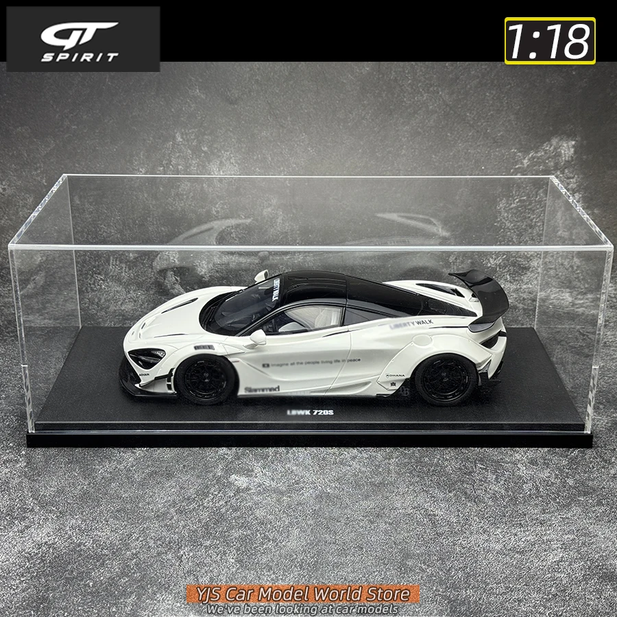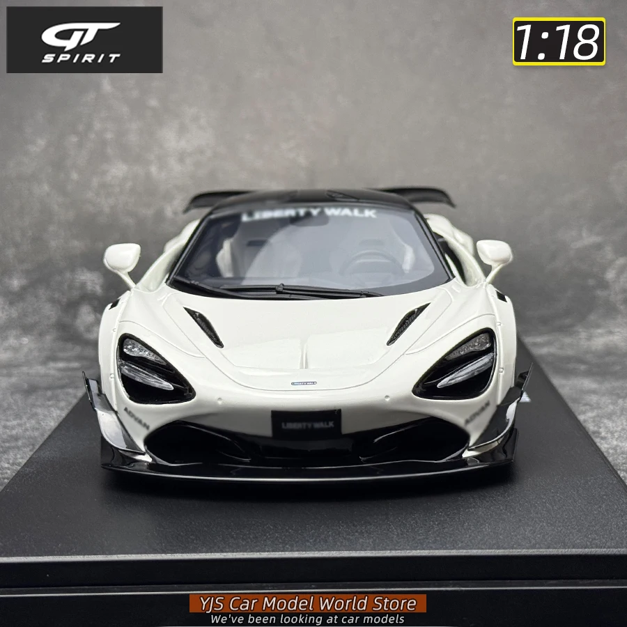 Experience the sleek elegance of the GT Spirit 1/18 resin diecast model of the McLaren 720S, measuring 25 cm long, 10.5 cm wide, and 7.5 cm tall. Featuring a stunning white finish with black accents on the roof, rear wing, front splitter, and multi-spoke wheels, this detailed static display captures the car’s aerodynamic curves, sharp hood contours, narrow headlights, and prominent rear wing. Designed exclusively for collectors aged 14 and above, it offers an immersive viewing experience with realistic proportions and craftsmanship, perfect for elevating your collection or striking display. A true tribute to high-performance design, this miniature masterpiece invites you to enjoy every precision detail.