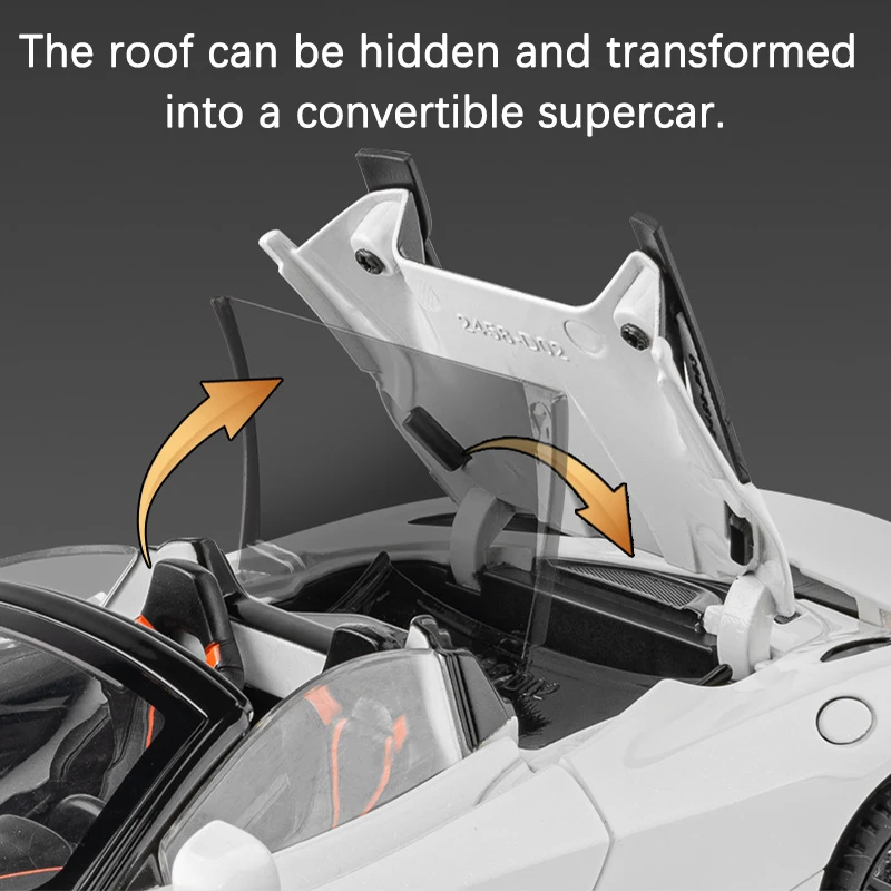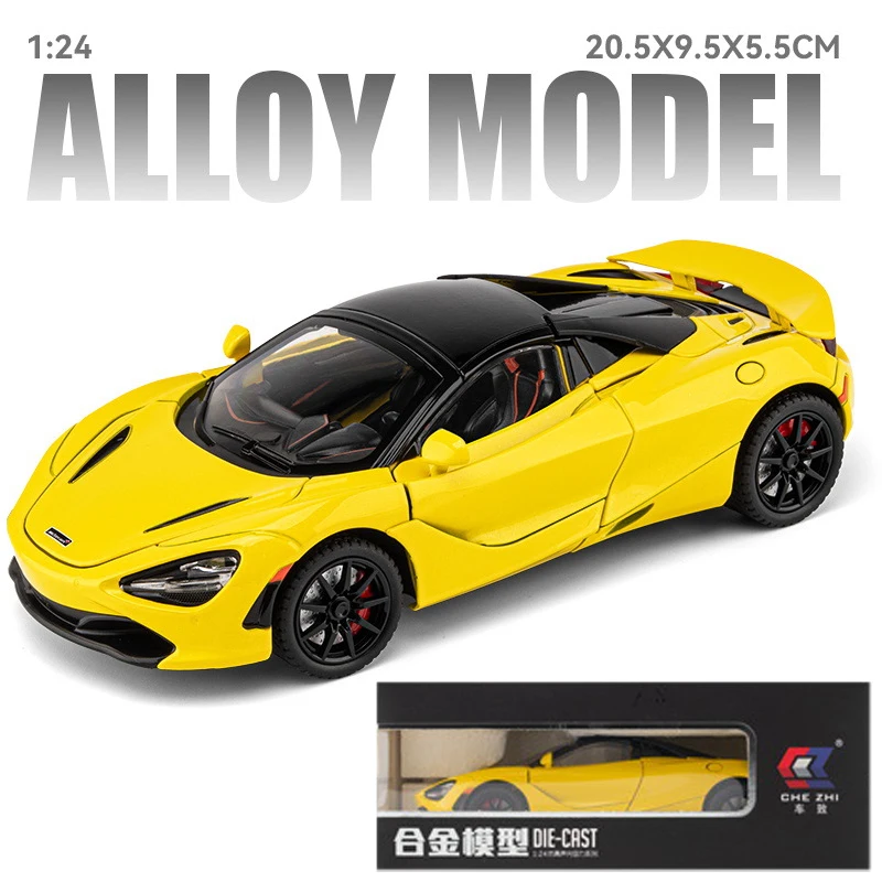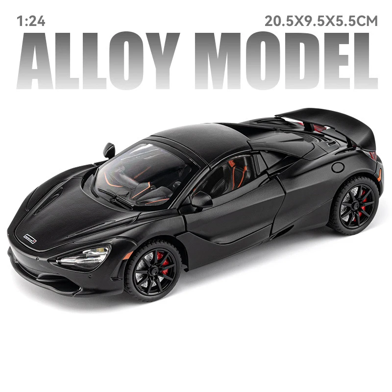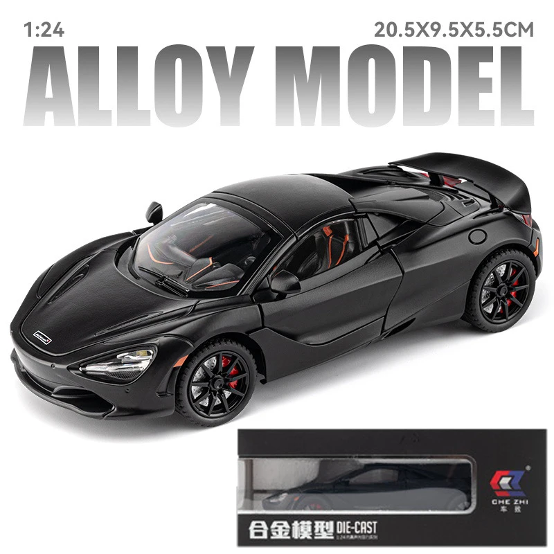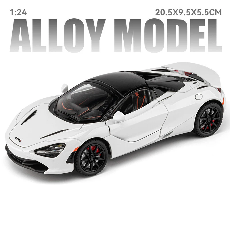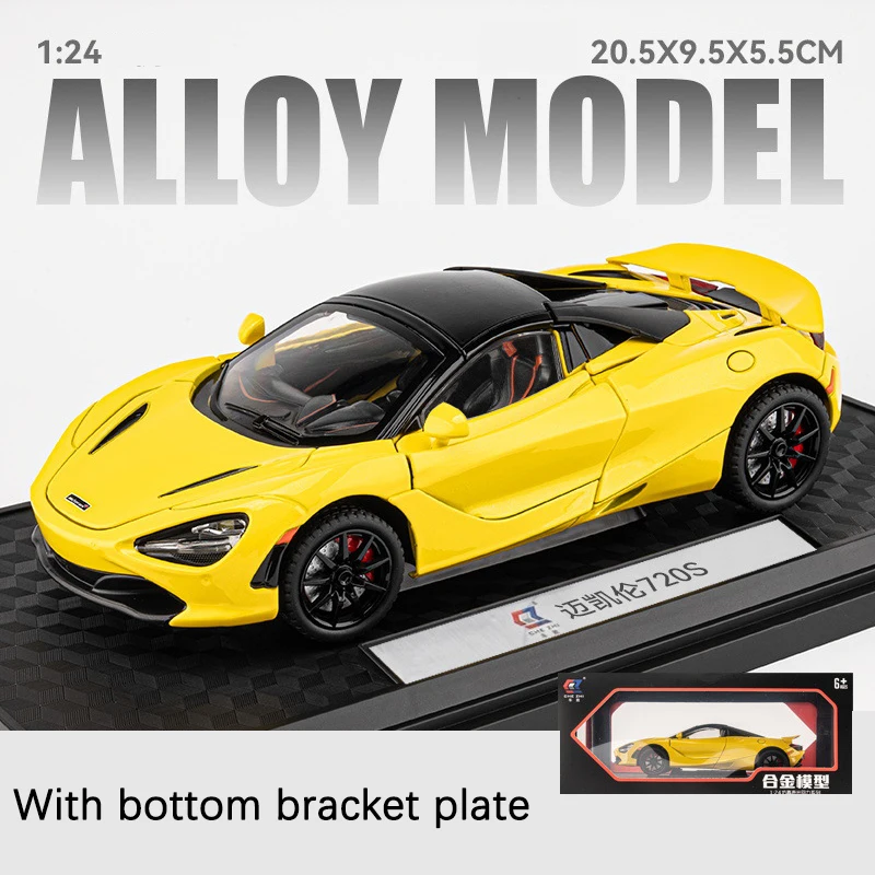 Experience the thrill of owning a stunning 1:24 scale diecast model car of the McLaren 720S. This remarkable collection features four distinct colors – sporty orange with black accents, sleek white with contrasting details, vibrant yellow, and classic black, ensuring there's a piece to match every personality. Crafted from high-quality metal, these models display intricate detailing, including realistic headlights, taillights, and aerodynamic curves that mimic the legendary design of the original vehicle. With built-in sound and light functions, these models provide interactive enjoyment without the need for batteries, making them perfect for both display and play.