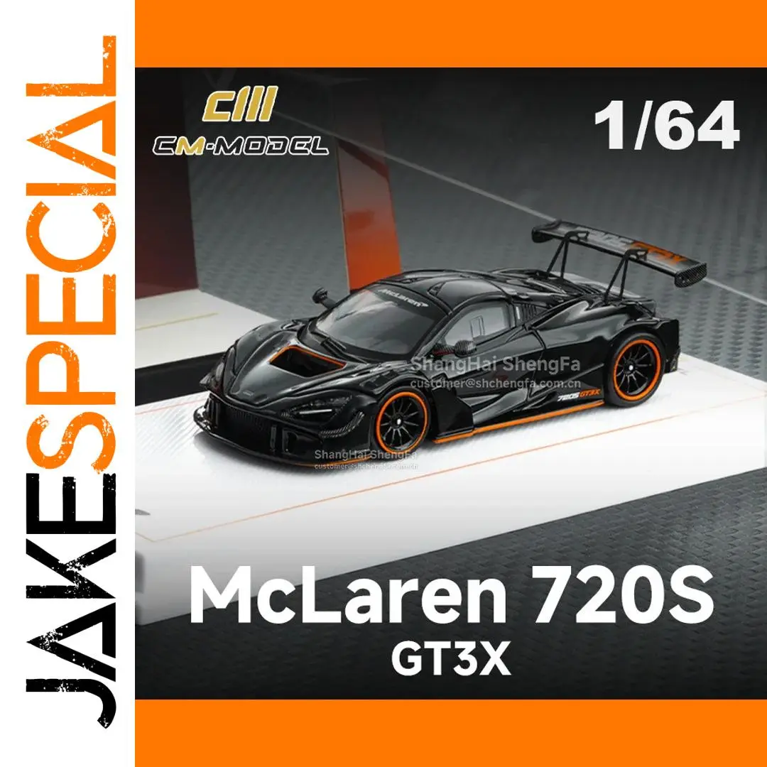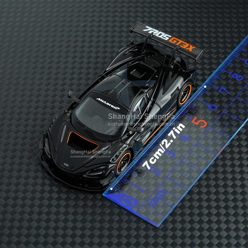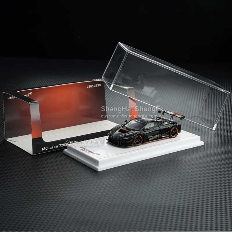 - This diecast model is scaled at 1:64, offering a compact yet detailed racing replica of the McLaren 720S GT3X supercar's aerodynamic form.