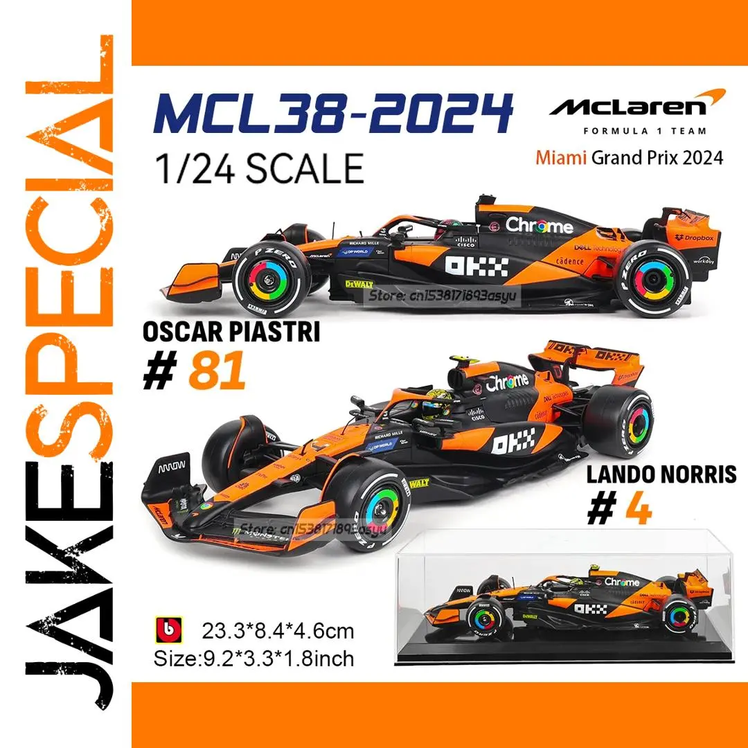Immerse yourself in the thrill of racing with this detailed 1:24 scale die-cast model of a McLaren F1 Team car, showcasing realistic, intricate details and vibrant liveries from the 2022 and 2023 seasons, including models like F1-75-16, MCL38-81, and SF23-16. Crafted from durable metal, this high-quality collectible features a sleek aerodynamic design, detailed decals, sponsor logos, a narrow elongated nose cone, sculpted front wing, and a bold rear wing. Measuring approximately 23.3 cm in length, it offers a museum-quality display piece for enthusiasts aged 14 and up. Perfect for adding authentic racing prestige to your collection or display space.