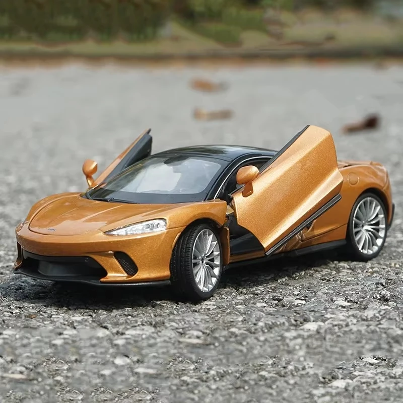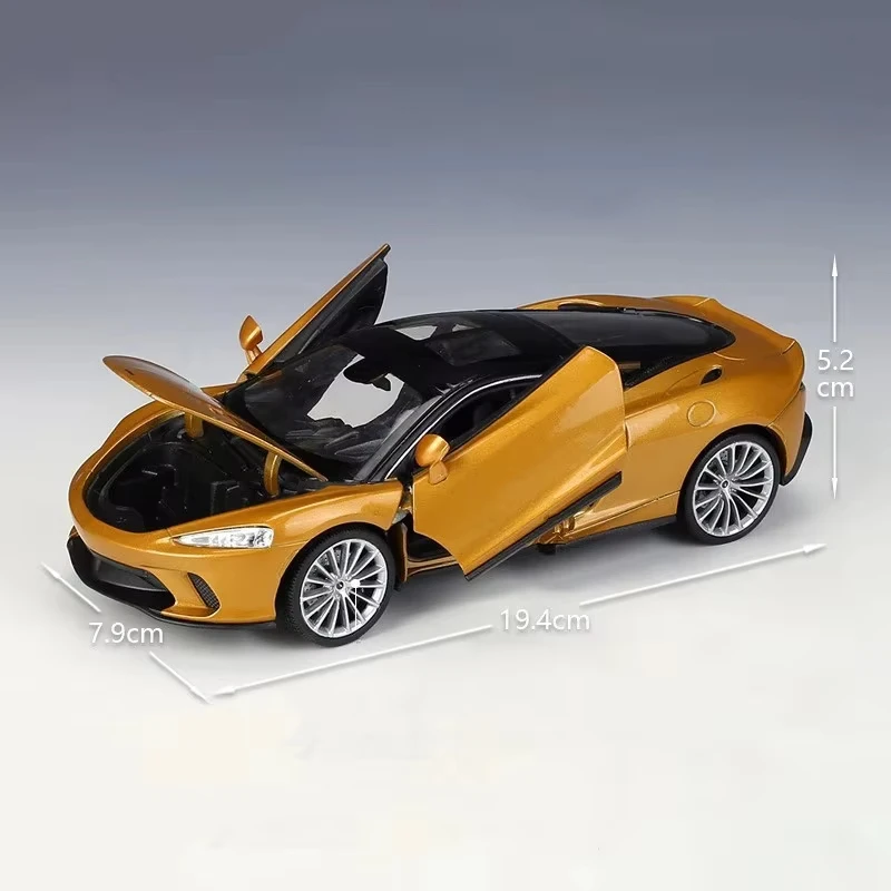 Experience the sleek realism of this 1:24 scale diecast model of the McLaren GT sports car, crafted from alloy and plastic with detailed design features. Reflecting high craftsmanship, the model showcases a streamlined body with sharp contours, subtle air intakes, and a gently sloping roofline ending in a rear spoiler. It features multi-spoke alloy rims with realistic tire treads, a detailed front grille, precise headlights, and clear windows revealing an intricate interior. Available in vivid blue, vibrant red, and elegant gold, this non-electric collectible offers authentic proportions and sharp lines, making it an ideal display piece or a cherished gift for enthusiasts aged 4 and above.