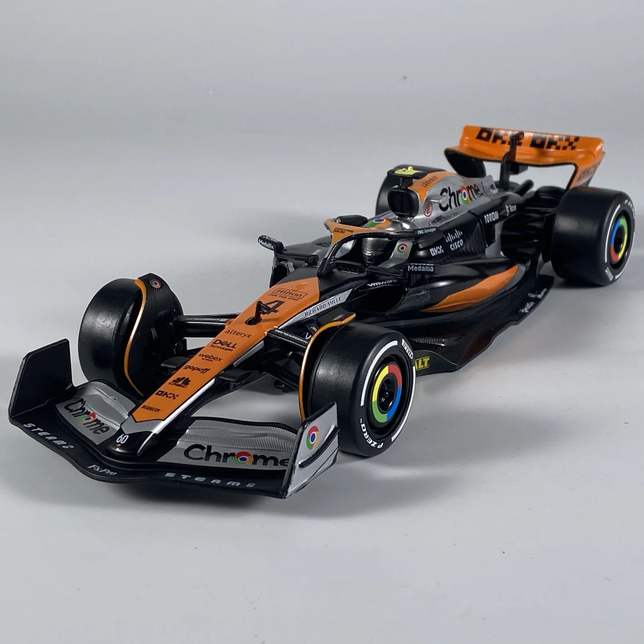 This detailed diecast model car replicates the McLaren MCL60, reflecting the iconic black and orange colors of the 2023 edition. Designed at a 1:24 scale, this model captures the essence of high-performance Formula 1 vehicles. Crafted meticulously from metal, it features a sleek aerodynamic body with a vibrant orange rear wing. The model embodies the competitive spirit of motorsports, showcasing Lando Norris's and Oscar Piastri's dynamic designs. The intricate details such as sponsor logos and chrome accents enhance its visual appeal, making it an excellent addition to any collection or a unique gift.