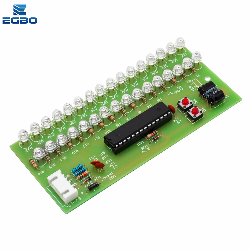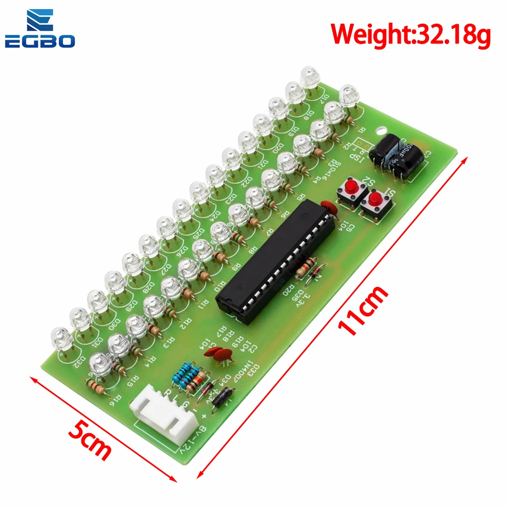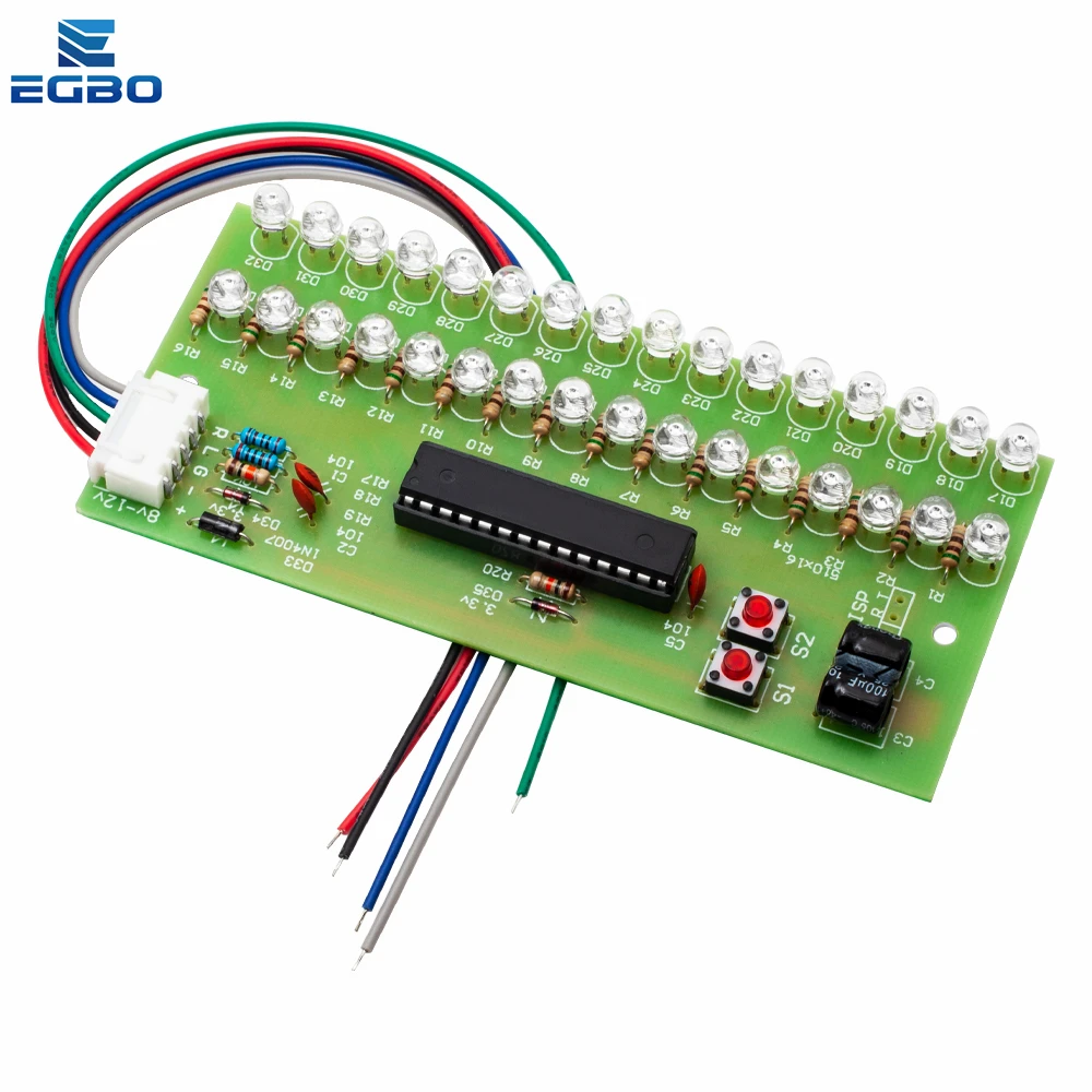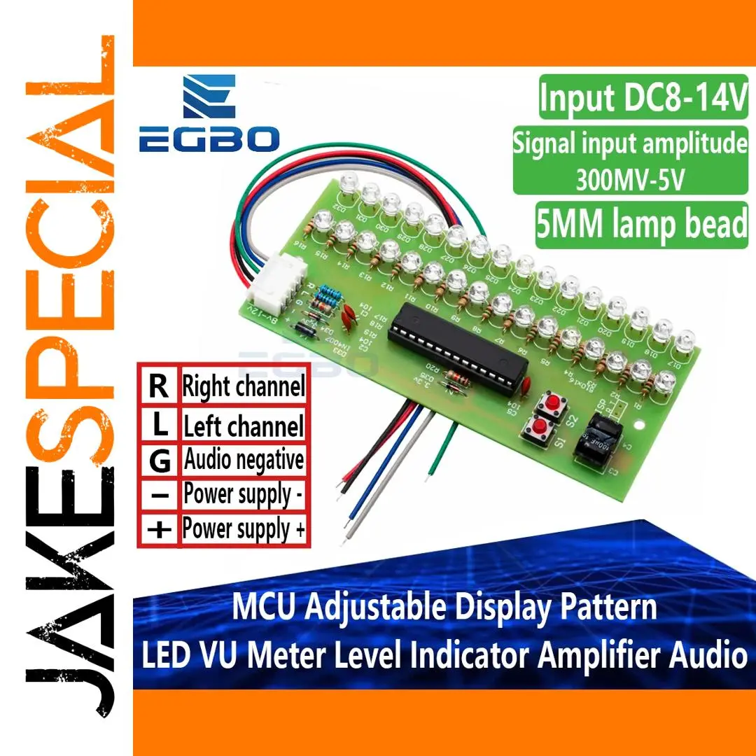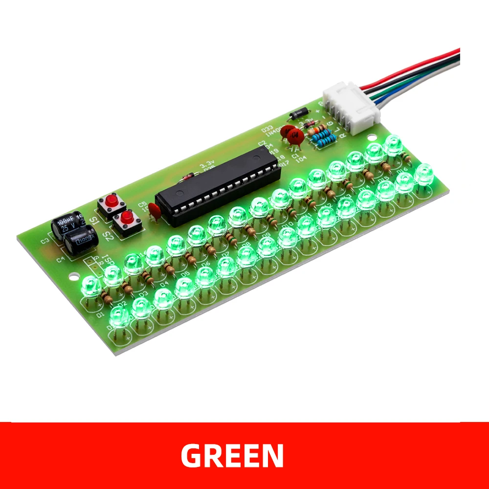 Enhance your audio monitoring setup with this sleek MCU adjustable display pattern LED VU meter level indicator, featuring 16 vibrant green LEDs arranged in a dual-channel configuration. Operating within an 8 to 14V DC range, it provides precise level monitoring for amplifiers and audio systems. Its compact design includes easy-to-access controls like red push buttons and a black rotary switch or potentiometer, all mounted on a durable green circuit board with clearly marked wiring points. With a wide operating temperature range of -40°C to 80°C and optional color variants, this customizable, high-quality device seamlessly integrates into various environments, offering both functional accuracy and a modern, industrial aesthetic that elevates your audio projects.