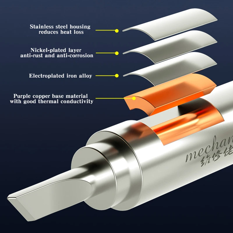 - Reflective, polished surface with multi-layer electroplating ensures durability, anti-oxidation, and anti-corrosion properties, making the tip suitable for repeated professional use in sensitive electronic work.