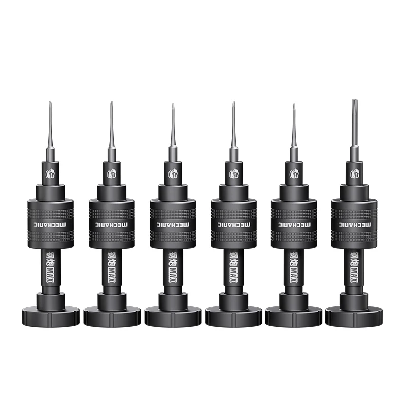 Experience the ultimate repair tool that combines durability, precision, and ergonomic comfort. The MECHANIC Mortar Max screwdriver set is designed for professionals and enthusiasts alike, offering fast, efficient disassembly of mobile phones, tablets, and laptops. Its alloy steel construction and imported rust-proof bearings ensure long-lasting performance and high precision, supporting various screw types from MAX 0.6 to MAX 2.5 and MAX T2. The sleek black handles with textured grips guarantee non-slip operation during demanding tasks. The magnetic head ensures secure handling of tiny screws, while the rotating mechanism with over 10,000 cycles of verified performance minimizes noise for a smooth experience. Whether you're a repair expert or a DIY hobbyist, this versatile tool makes your work easier and more enjoyable.