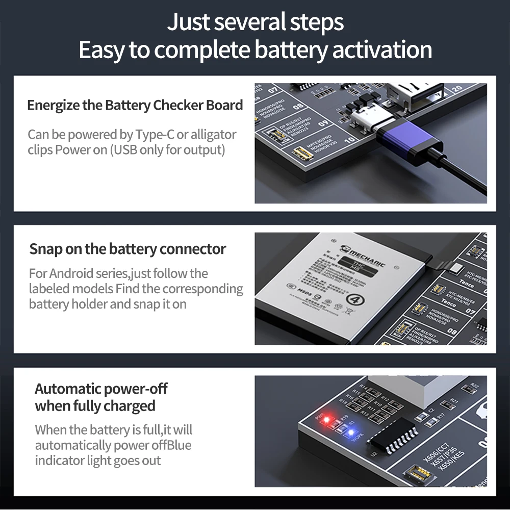 Keys features of this this MECHANIC Pro20 Battery Activation Test Board