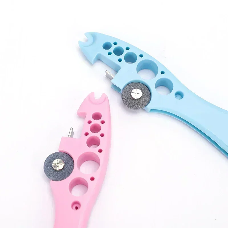 - Technical specifications include ABS handle, stainless steel cutting tip, available in pink, blue, and white.