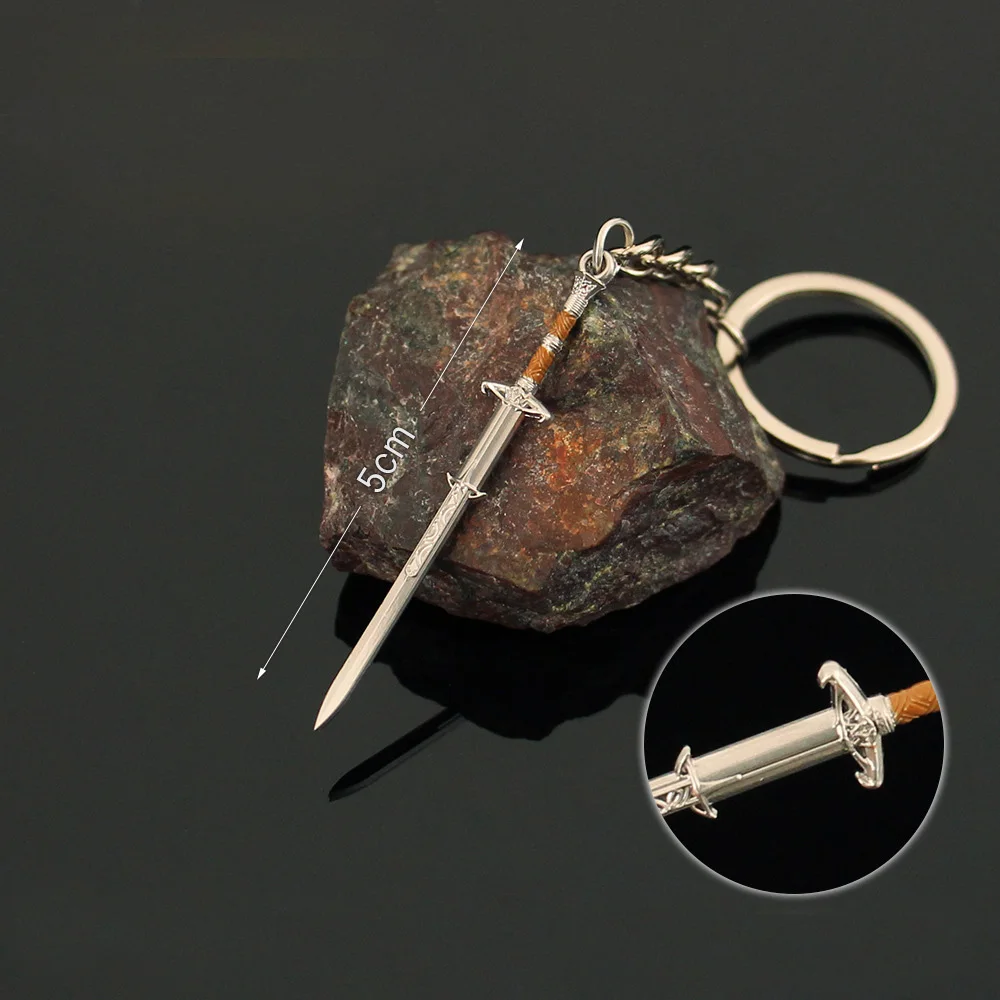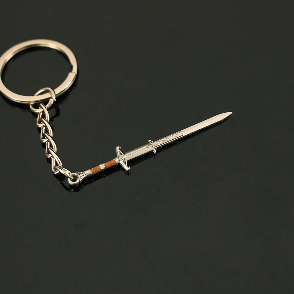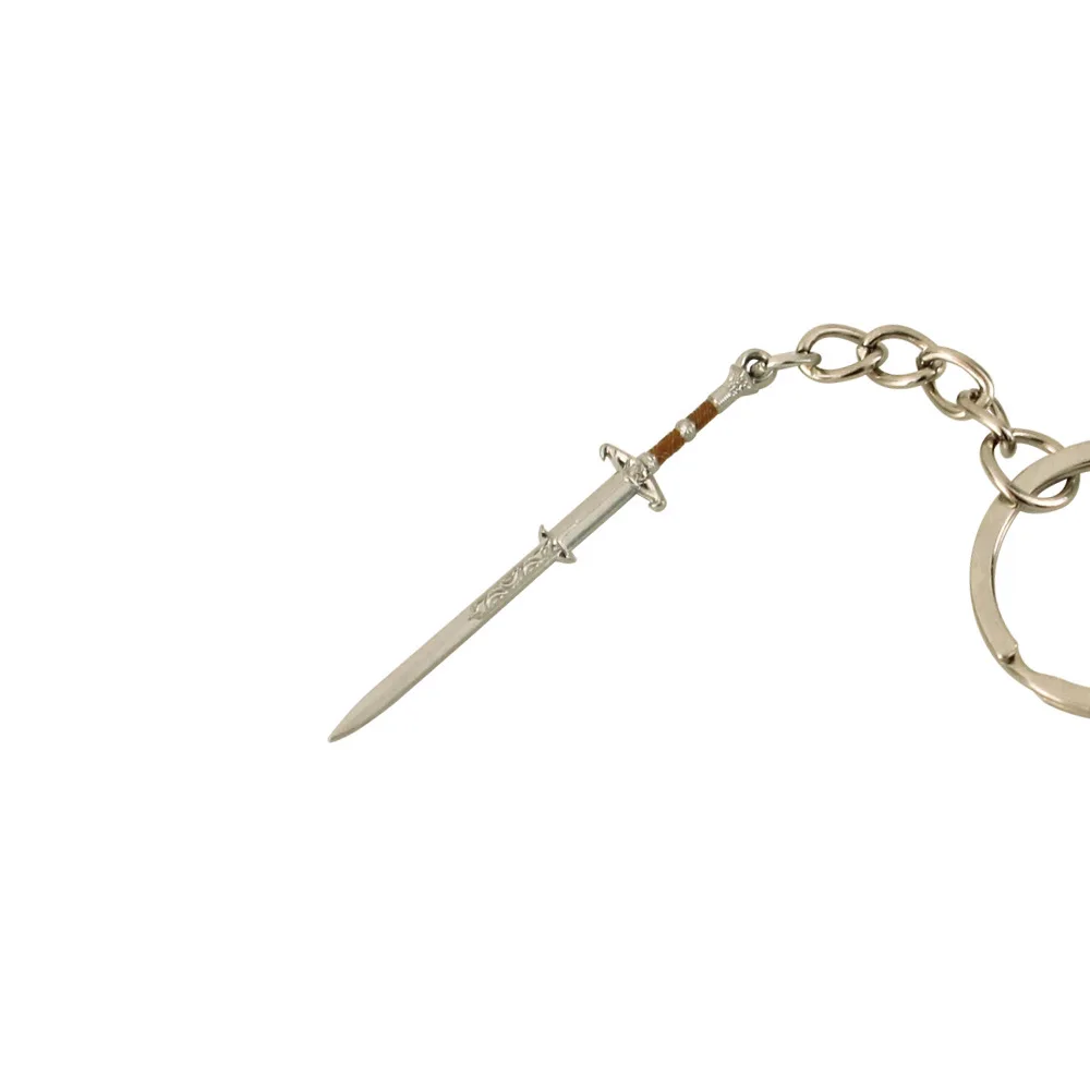 This 5cm silver keychain crafted from zinc alloy features a miniature medieval-inspired design with a slender, pointed blade, engraved near the hilt. The flared crossguard, textured grip resembling leather or wood, and a circular O-shaped buckle at the top combine to create a playful yet detailed accessory. Its durable, polished silver finish ensures long-lasting quality, making it perfect for daily use or as a collectible item. A stylish fusion of fantasy and craftsmanship, this keychain adds a unique touch to your keys or accessories, allowing you to express your love for medieval aesthetics with confidence and flair.