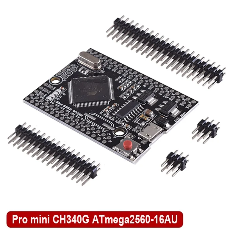 Experience the unparalleled capabilities of the Mega 2560 PRO MINI 5V (Embed) CH340G ATmega2560-16AU. This compact yet powerful circuit board is designed for seamless integration into your projects, boasting an ATmega2560 microcontroller with an impressive program memory size of 256K bytes. Featuring easy connectivity through four UART ports and a reliable voltage regulator, the board operates within a wide voltage range, making it ideal for various applications. With a compact dimension of 38mm x 55mm, you've found the perfect solution for all your prototyping needs while enjoying the sleek, black aesthetic with clear white labels that guide every interaction.