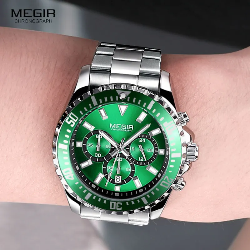 Imagine the confidence and style you'll exude while wearing this MEGIR Men's Chronograph Watch 2064G-9. Meticulously designed for the modern man, this exquisite timepiece features a striking green dial and a robust stainless steel band that perfectly blends elegance with durability. You'll find it not just an accessory, but a statement piece that enhances your look on any occasion. With precise quartz movement and luminous hands, you will never miss a moment, even in dim lighting. Embrace functionality and sophistication as you make this watch a part of your daily routine.
