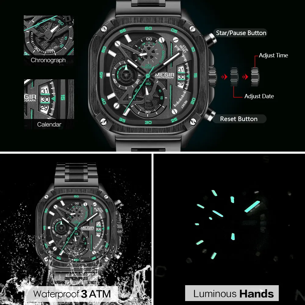 Elevate your wrist game with the MEGIR MS2217G-BK-1N9 Men’s Waterproof Quartz Watch. This sophisticated timepiece features a sporty square dial design combined with luminous hands, ensuring you can effortlessly tell time even in low light. With water resistance up to 3 ATM, it’s perfect for daily wear, whether at the office or during outdoor activities. The multifunctional quartz movement includes chronograph and calendar features, making it as practical as it is stylish. The durable stainless steel strap ensures comfort and longevity. Imagine adding this elegant watch to your collection—it’s more than just a watch; it’s a statement.