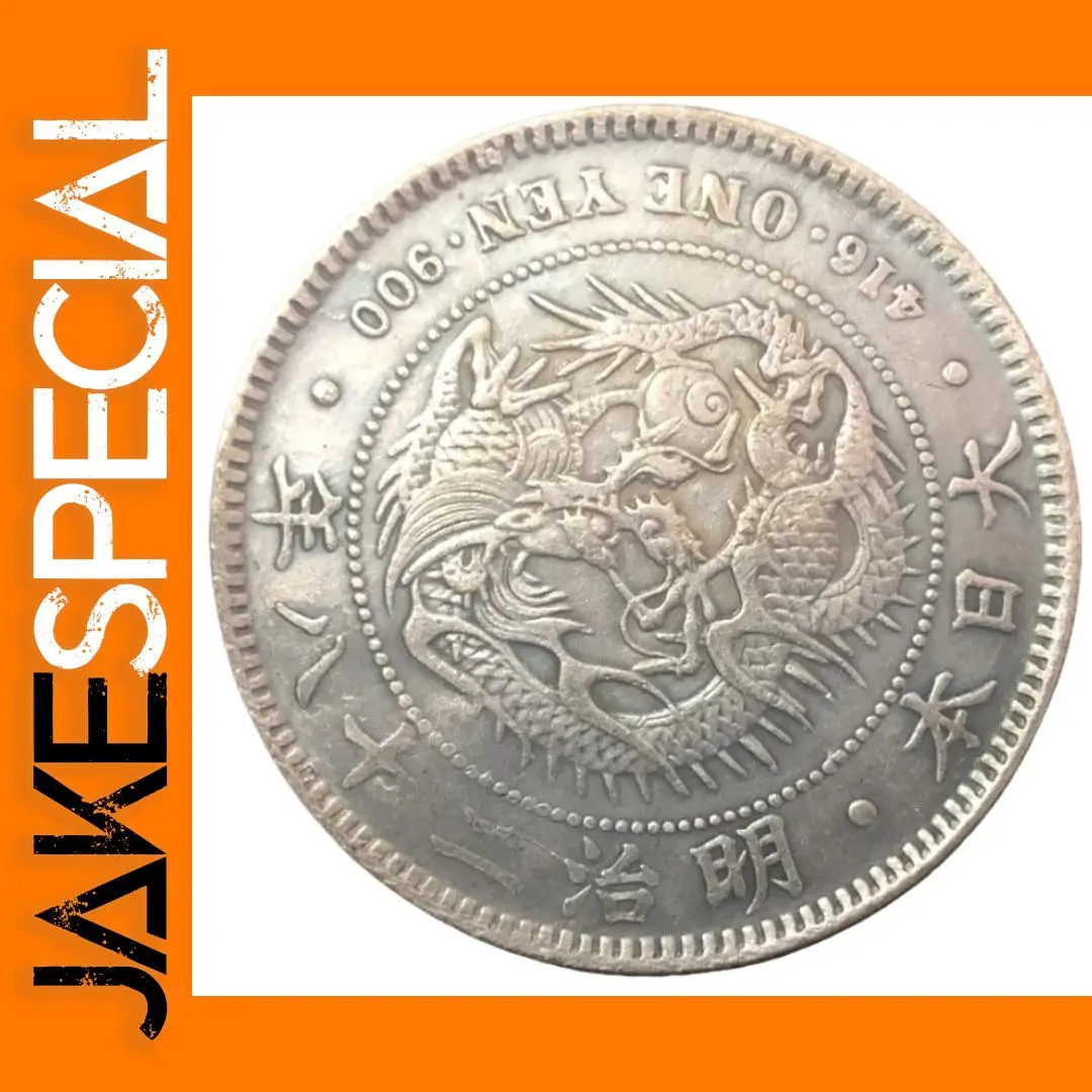 Imagine owning a piece that transports you to the rich history of the Meiji era with its exquisite craftsmanship and detailed artistry. This 1895 Japanese silver replica features a striking design centered around a majestic dragon, with textured scales, flowing mane, and fierce facial features that embody power and elegance. The intricate engraving extends to a circular border decorated with evenly spaced beaded details, providing a polished, vintage appearance. Surrounding the motif are traditional inscriptions, including the date “41.6 ONE YEN 900” and Japanese characters, all highlighted against a subtle antique patina background. This replica is more than a collectible; it’s a timeless artistic statement that evokes history and craftsmanship. Perfect for display or as a treasured addition to your collection.