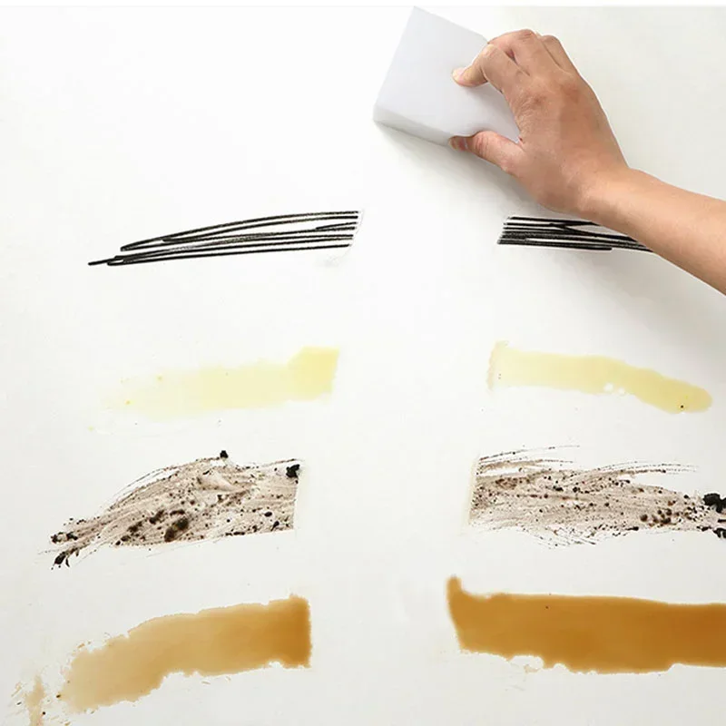 Experience versatile and eco-friendly cleaning with this set of 5 or 50 white melamine sponges, designed to effortlessly remove stubborn stains using only tap water—no chemicals or detergents needed. Made from 99% natural, antibacterial, and non-toxic materials, these lightweight, rectangular sponges feature smooth edges and flat surfaces for a sleek, minimalist appearance. Safe on skin and suitable for various surfaces, they can be cut into smaller sections to fit specific cleaning needs, including convex or delicate areas. Ideal for kitchen, bathroom, and household cleaning, these durable sponges combine effectiveness with environmental consciousness, providing a reliable solution for a spotless space.