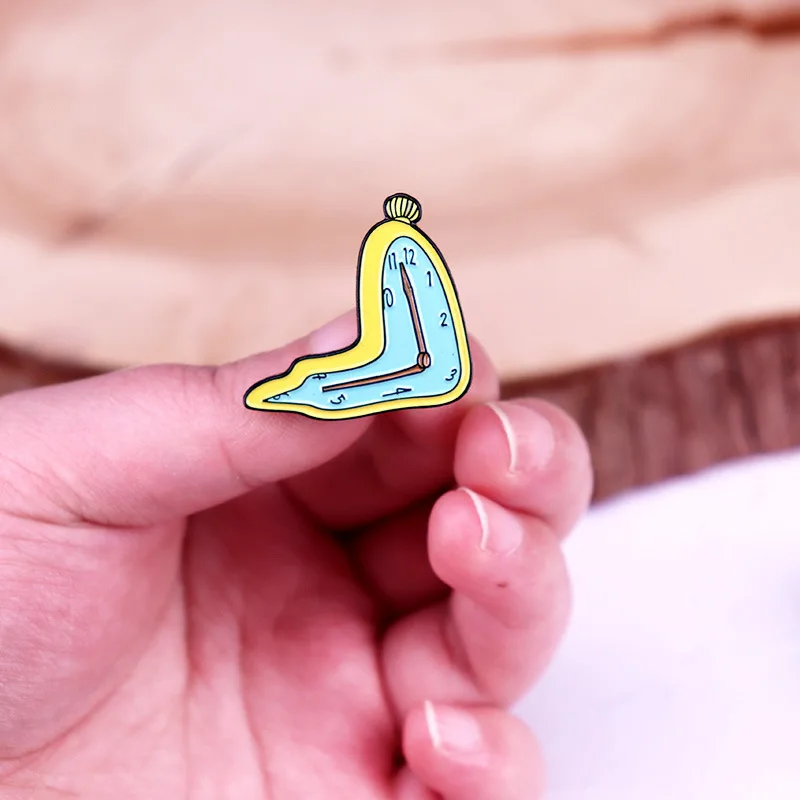 This melting clock enamel pin badge brooch is an essential accessory for anyone looking to add a whimsical touch to their style. Its bright colors and surreal design make it a perfect conversation starter. Adorn your favorite jackets, bags, or hats with this playful piece, and enjoy the unique art it represents. Don’t miss the chance to showcase your personality with this trendy and elegant pin!
