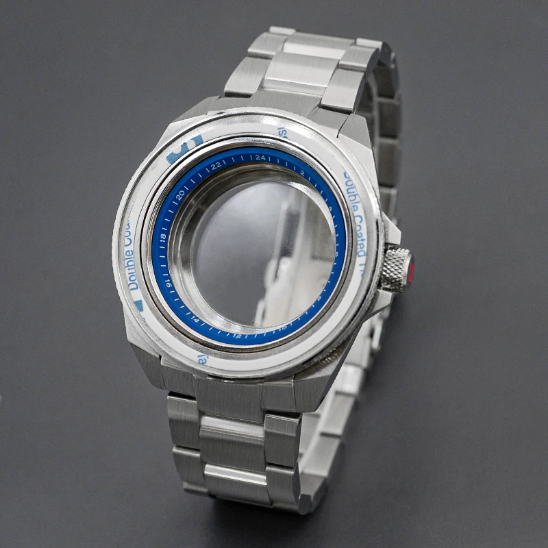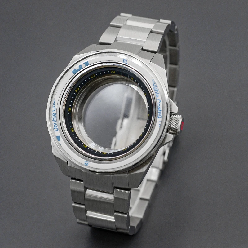 Upgrade your diving timepiece with this high-quality men’s stainless steel watch case, crafted from durable 316L stainless steel with a polished finish. Measuring 45mm in diameter and 14mm thick, it features a scratch-resistant sapphire crystal glass and a screw-in crown at 3 o’clock with a subtle red accent. The transparent screw-in bottom cover allows a view of the movement, while a black bezel with white markings offers a professional, functional look. Compatible with 22mm straps and suitable for Japanese automatic movements such as 4R35, 4R36, NH35, NH36, 7S26, and 7S36, this case supports water resistance up to 20 ATM, perfect for adventurous outdoor activities.